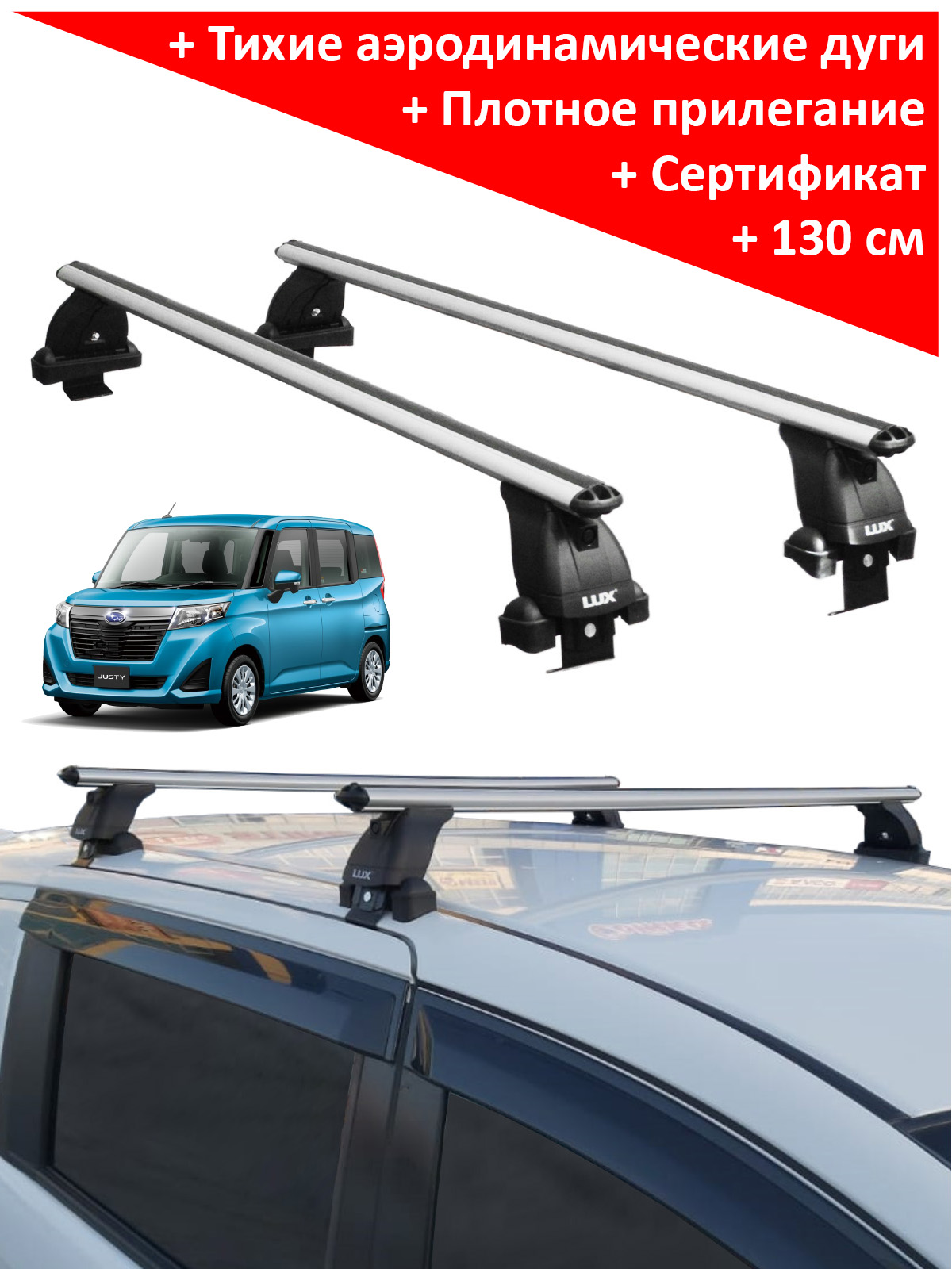 Автобагажник на крышу автомобиля Subaru Justy V (минивен, 2016-...) - Lux (Россия), аэродинамические дуги (аэро-классик, 53 мм). Грузоподъемность до 75 кг