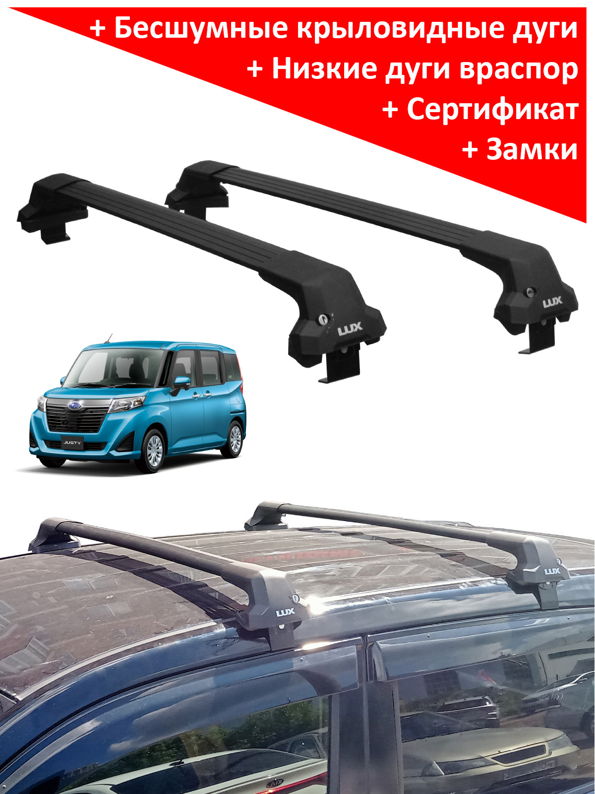 Багажная система Lux City для Subaru Justy V (минивен, 2016-…) (враспор, без вылетов), производство - Lux (Россия, Москва). Черные дуги. Грузоподъемность до 75 кг