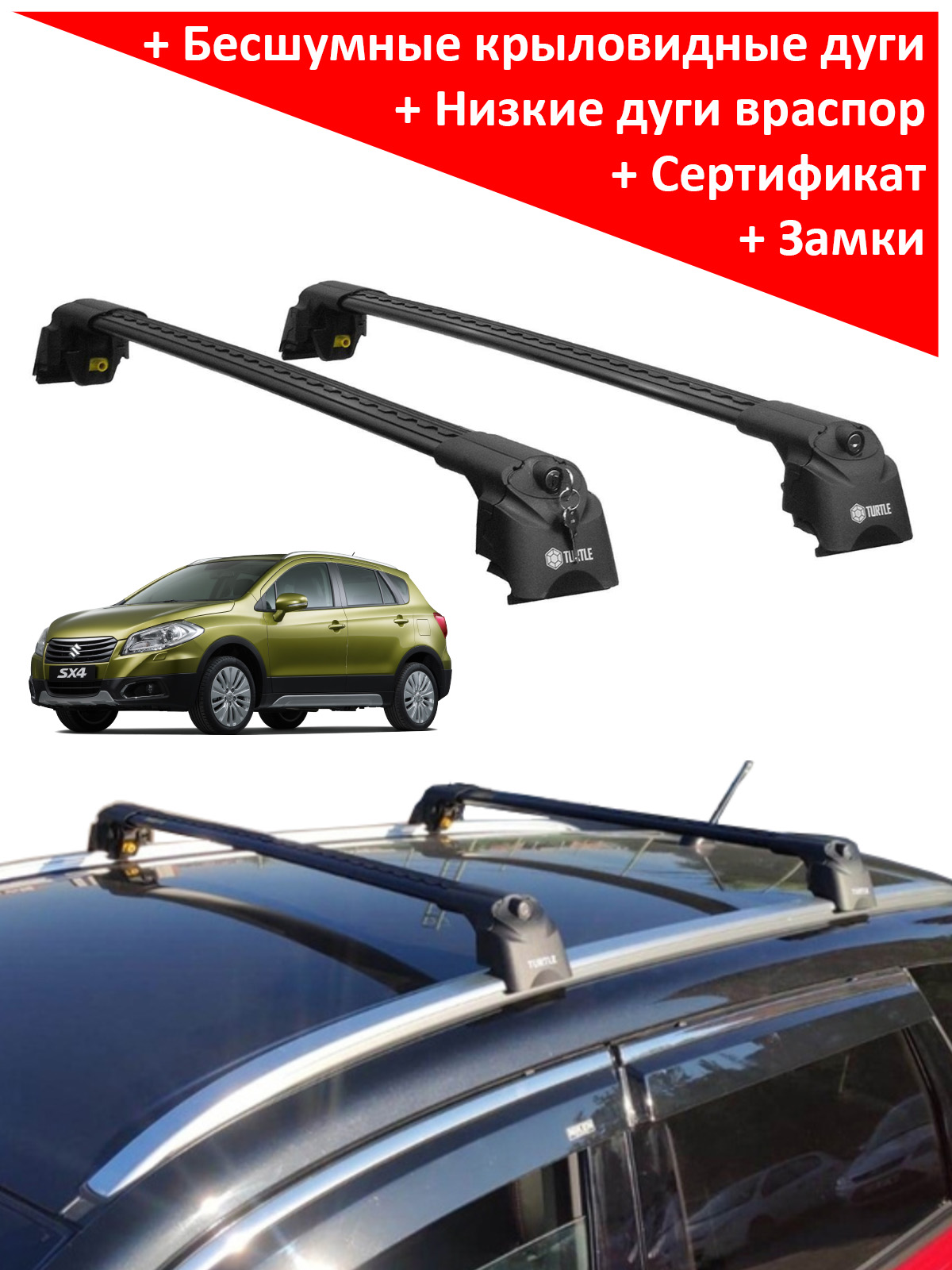 Багажник на крышу Suzuki SX4 S-Cross 2013-2021, Turtle Air 2, аэродинамические дуги на интегрированные рейлинги (черный цвет)