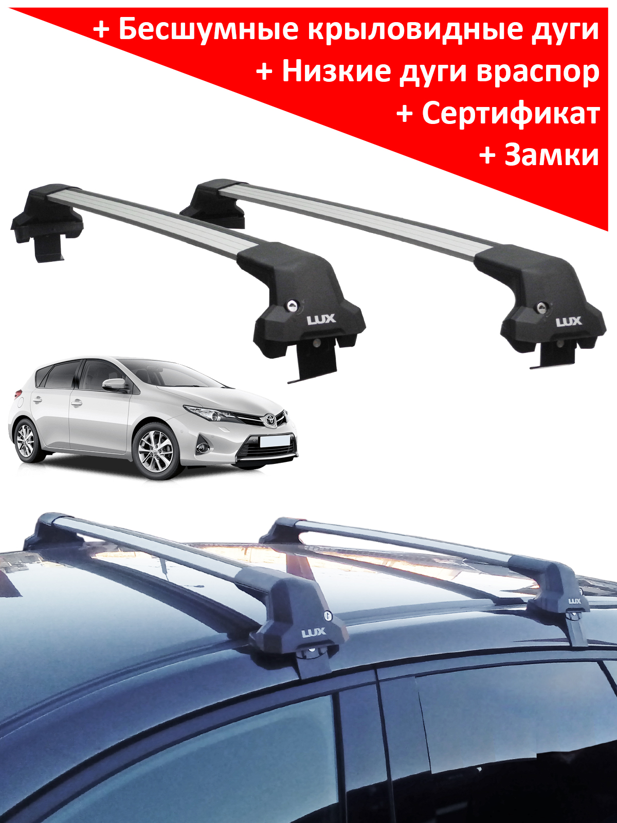Багажник на крышу Toyota Auris (E180), хэтчбек, 2012-2018, Lux City (без выступов), с замком, серебристые крыловидные дуги