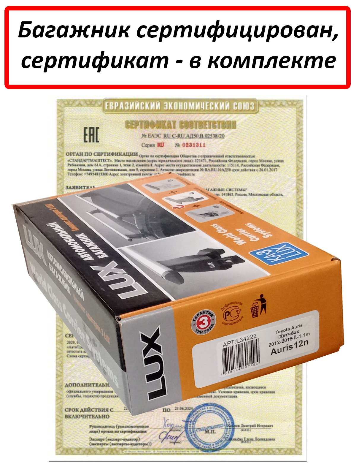 Представляем багажную систему Lux City на крышу Toyota Auris (E180), хэтчбек, 2012-2018 от российского производителя - марки "Lux". Цвет дуг - серебристый.