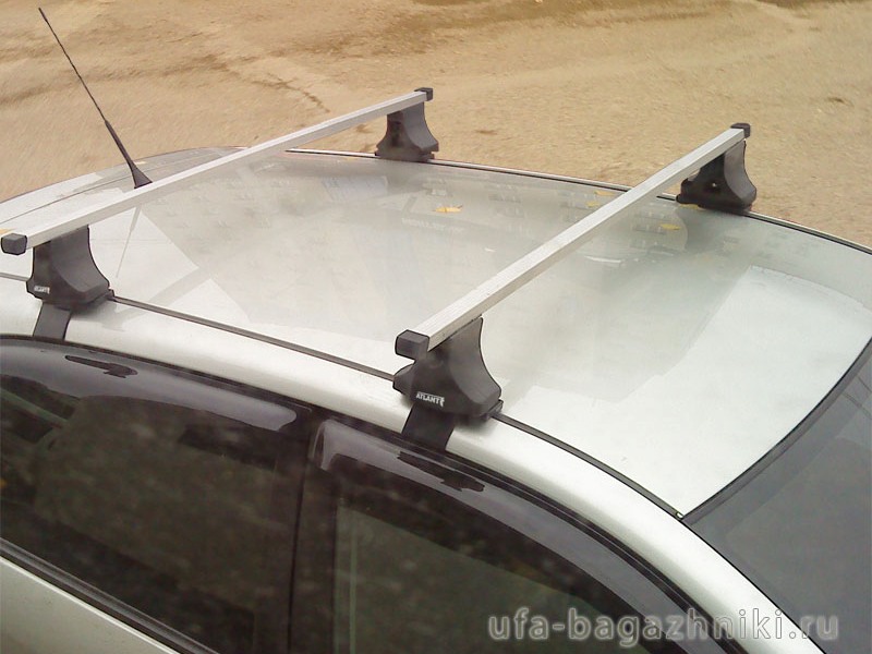 Автобагажник на крышу Toyota Avensis T25 (2003-2009г седан), Toyota Avensis T27 (с 2009г-... седан), Атлант (Россия), с прямоугольными дугами. Грузоподъемность до 75 кг (до 100 кг распределенной нагрузки)