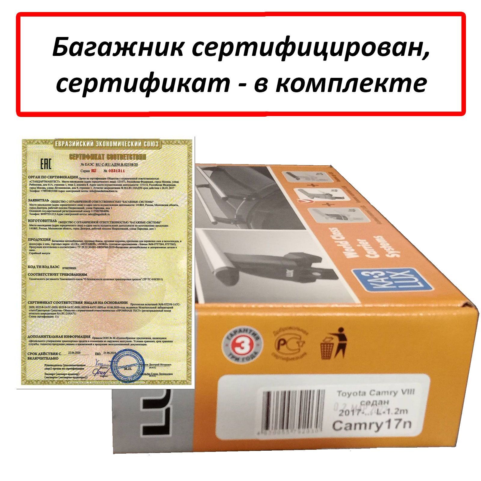 Багажная система Lux City для Toyota Camry XV70 2017-..., sedan (враспор, без вылетов), производство - Lux (Россия, Москва). Серебристые дуги. Грузоподъемность до 75 кг