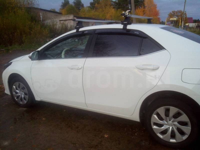 Автобагажник на крышу на Toyota Corolla (E160) (2013-2019, sedan), с аэродинамическими дугами и опорами типа Е. Грузоподъемность до 75 кг (до 120 кг распределенной нагрузки)