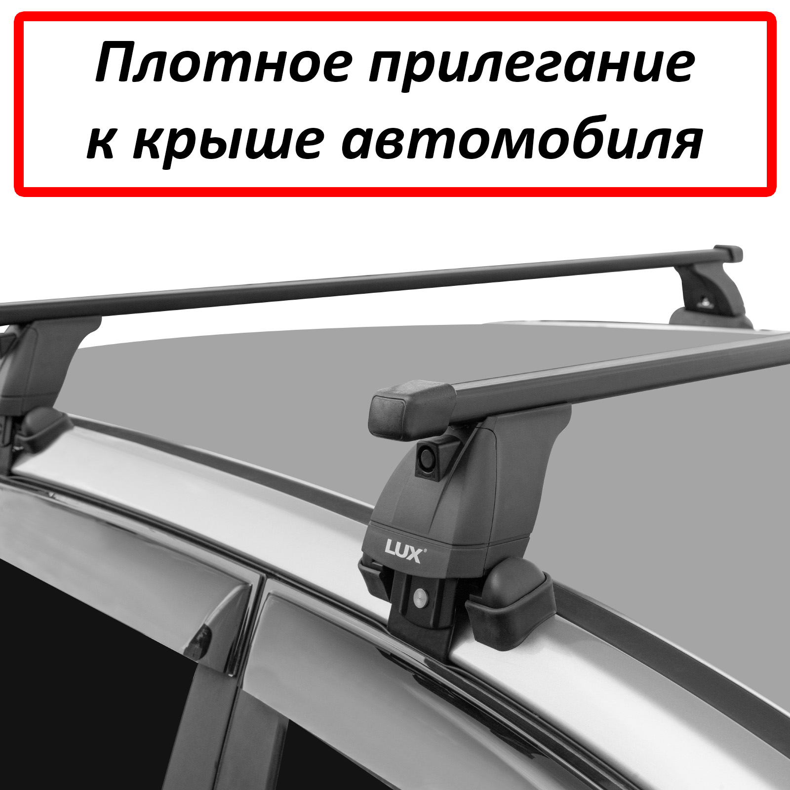 Багажная система Lux - это простая, но надежная конструкция, состоящая из трех основных частей: дуг, опор и адаптеров. Дуги изготовлены из стального прямоугольного профиля 20х30 мм, их длина - 1200 мм, поверх дуги имеется рельефная пластиковая оболочка черного цвета. Концы дуг закрываются парой заглушек. Дуги опираются на 4 стойки, производимые из прочного пластика. Фиксация на крыше производится с помощью системы адаптеров за дверной проём. В качестве дополнительной опции возможно приобретение металлических замков на опоры.