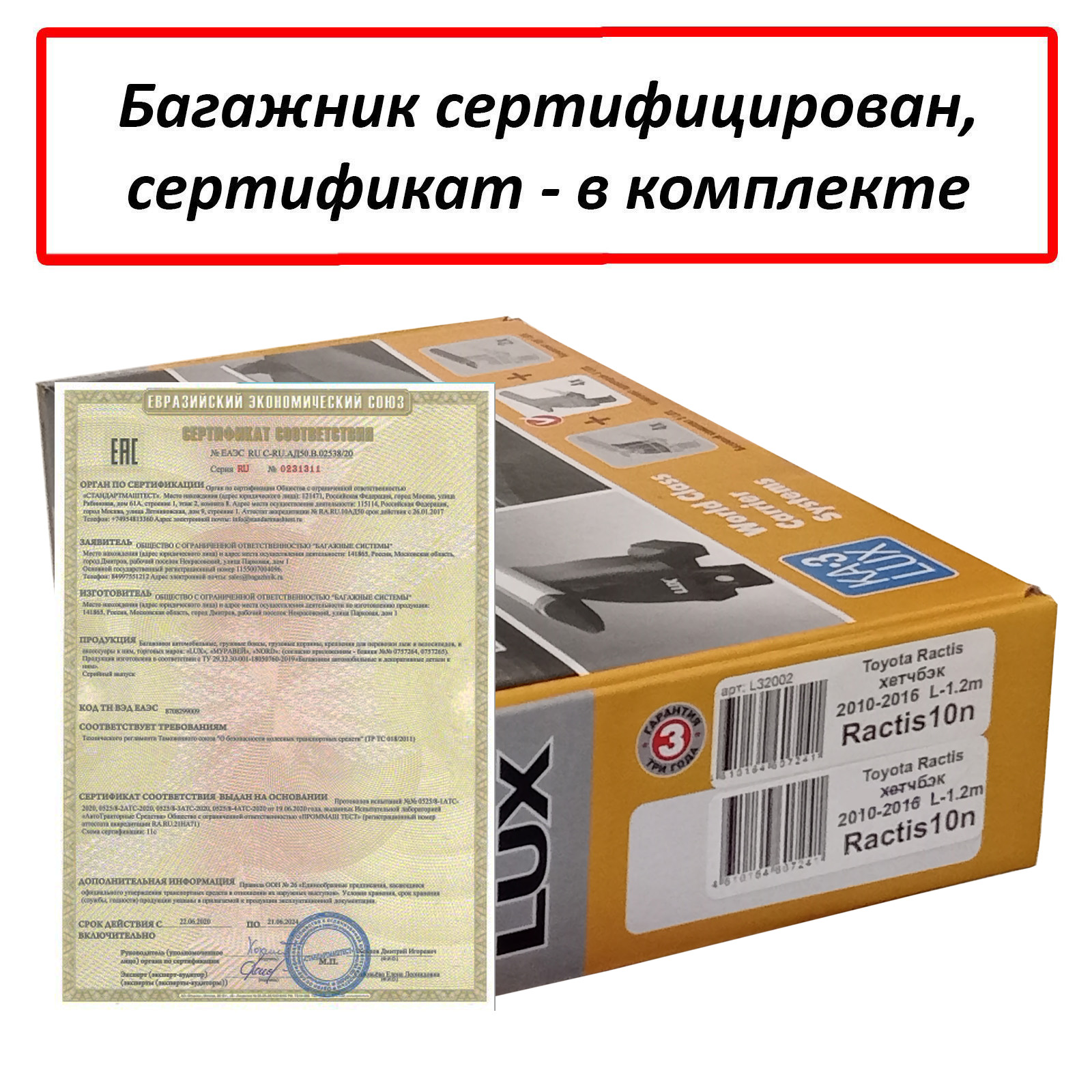 Автобагажник на крышу автомобиля Toyota Ractis II (хэтчбек, 2010-2016) - Lux (Россия), аэродинамические дуги (аэро-классик, 53 мм). Грузоподъемность до 75 кг