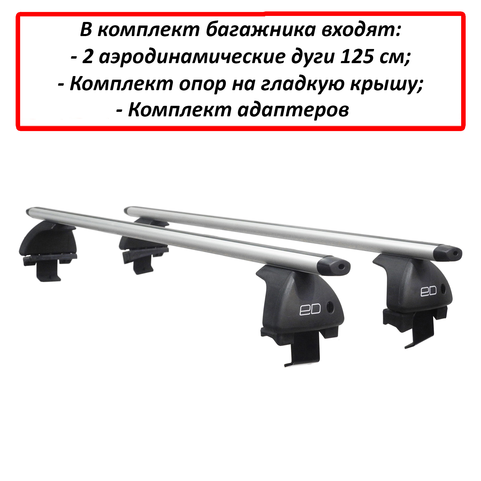 Багажная система ЕД - это простая, но надежная конструкция, состоящая из трех основных частей: дуг, опор и адаптеров. Профиль дуги - аэродинамический, материал - анодированный алюминий, цвет - серебристый, длина 1250 мм. Поверх дуги проходит Т-образный профиль, предназначение которого - легкая и быстрая установка дополнительного оборудования - велокреплений, лыжный насадок. В свободном состоянии Т-профиль закрывается черным резиновым уплотнителем. На концах дуг располагается пара заглушек. Дуги опираются на 4 стойки, производимые из прочного пластика. Крышки плотно закрываются на пластиковый замок (Дополнительная опция - металлические замки). Фиксация на крыше производится с помощью системы адаптеров за дверной проём.