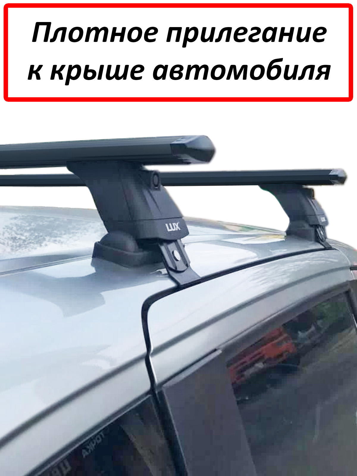 Багажная система Lux - это простая, но надежная конструкция, состоящая из трех основных частей: дуг, опор и адаптеров. Профиль дуги - аэродинамический, крыловидный, материал - анодированный алюминий, цвет - черный (окрашенный), длина 1300 мм, ширина - 82 мм. Поверх дуги проходит Т-образный профиль, предназначение которого - легкая и быстрая установка дополнительного оборудования - велокреплений, лыжный насадок. В свободном состоянии Т-профиль закрывается черным резиновым уплотнителем. На концах дуг располагается пара оригинальных заглушек, имеющих отодвигающийся лючок для доступа к Т-профилю. Дуги опираются на 4 стойки, производимые из прочного пластика. В качестве дополнительной опции возможна установка на крышки опор металлических замков Lux. Фиксация на крыше производится с помощью системы адаптеров за дверной проём.