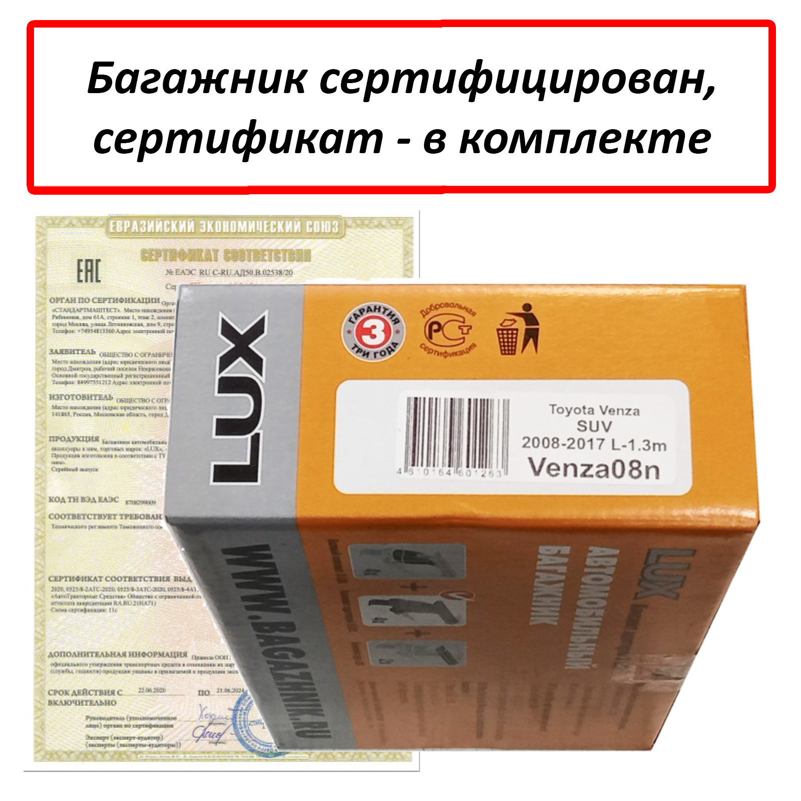 Простой и эффективный способ увеличения грузовых возможностей вашего автомобиля - установка верхнего багажника. Наш интернет-магазин представляет багажник на крышу Toyota Venza (2008-2017), производство Lux (Россия), версия с крыловидными дугами черного цвета (аэро-трэвэл, 82 мм). Рекомендуемый вес перевозимого груза - до 75 кг распределенной нагрузки.