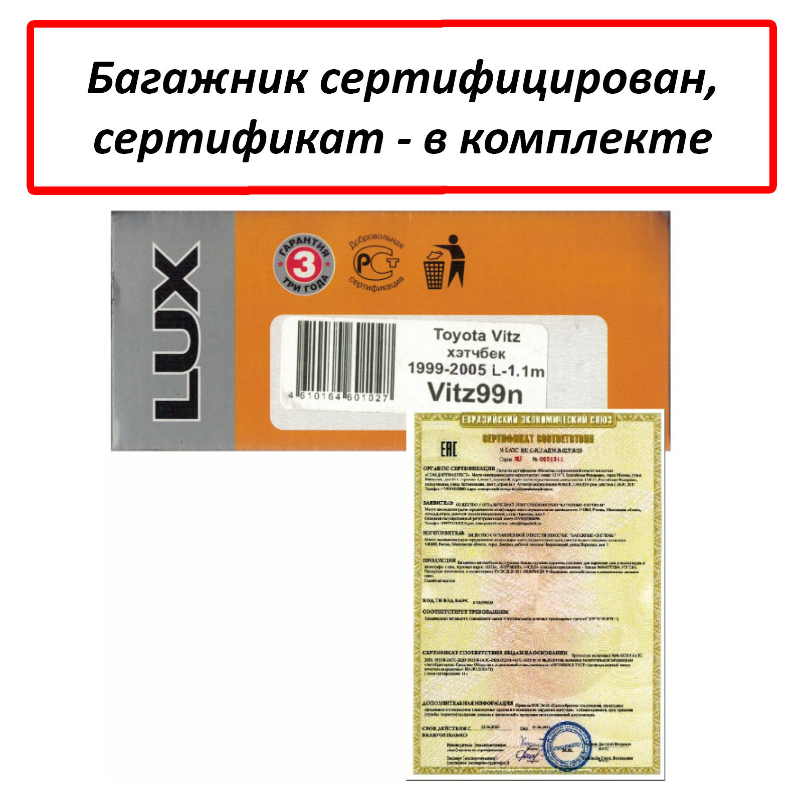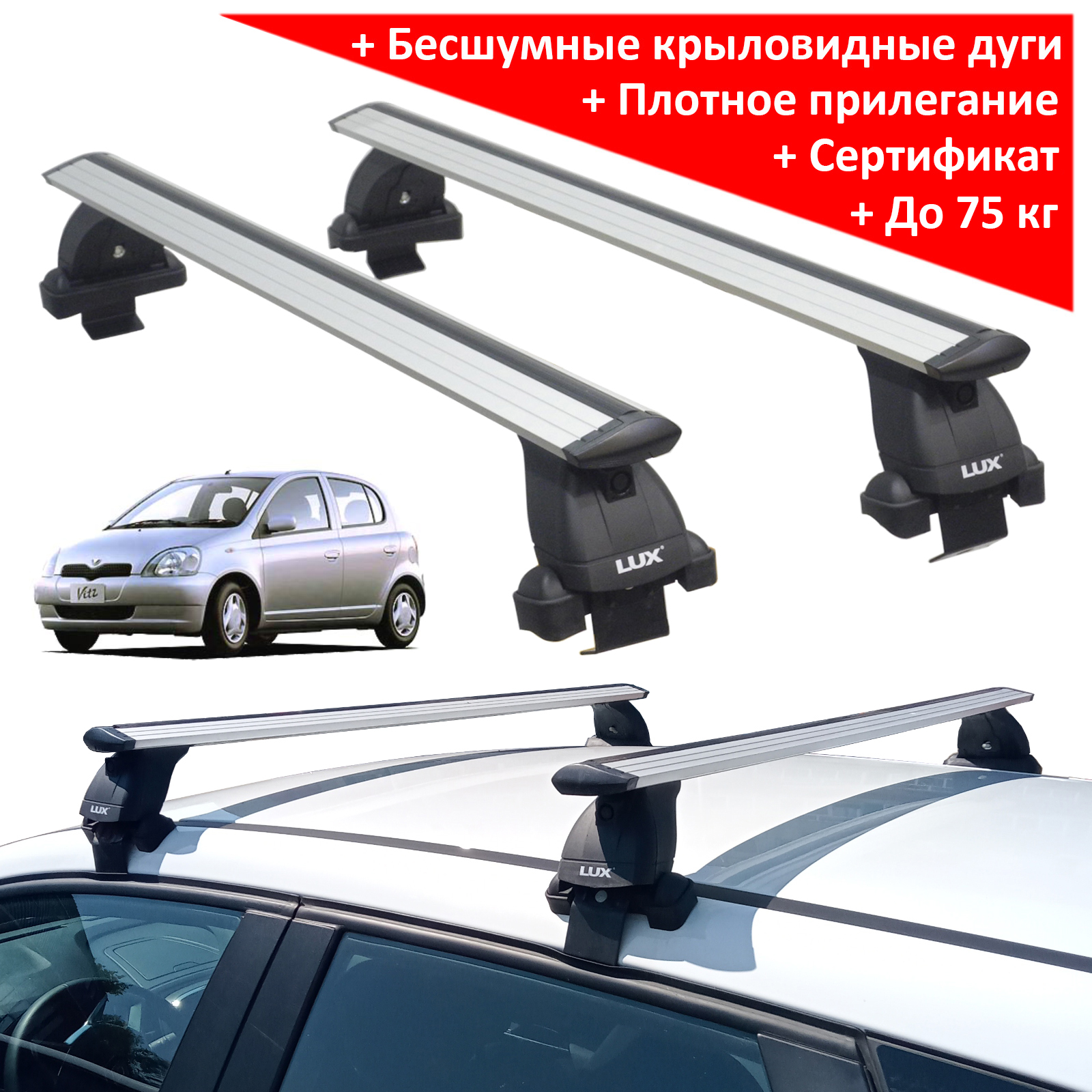 Автобагажник на крышу автомобиля Toyota Vitz I (P10) (1999-2005) - Lux (Россия), крыловидные дуги (аэро-трэвэл 82 мм). Грузоподъемность до 75 кг