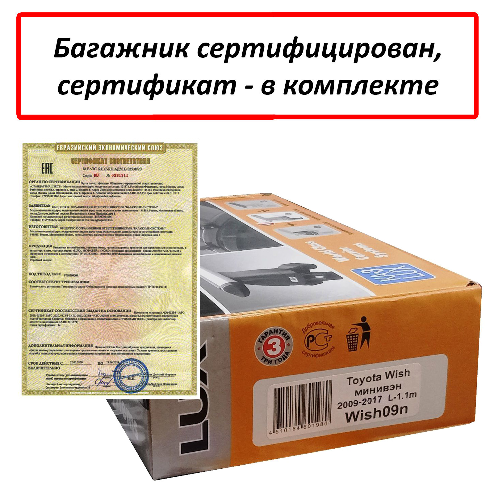 Автобагажник на крышу автомобиля Toyota Wish (AE20) 2009-2017 - Lux (Россия), крыловидные дуги (аэро-трэвэл 82 мм). Грузоподъемность до 75 кг