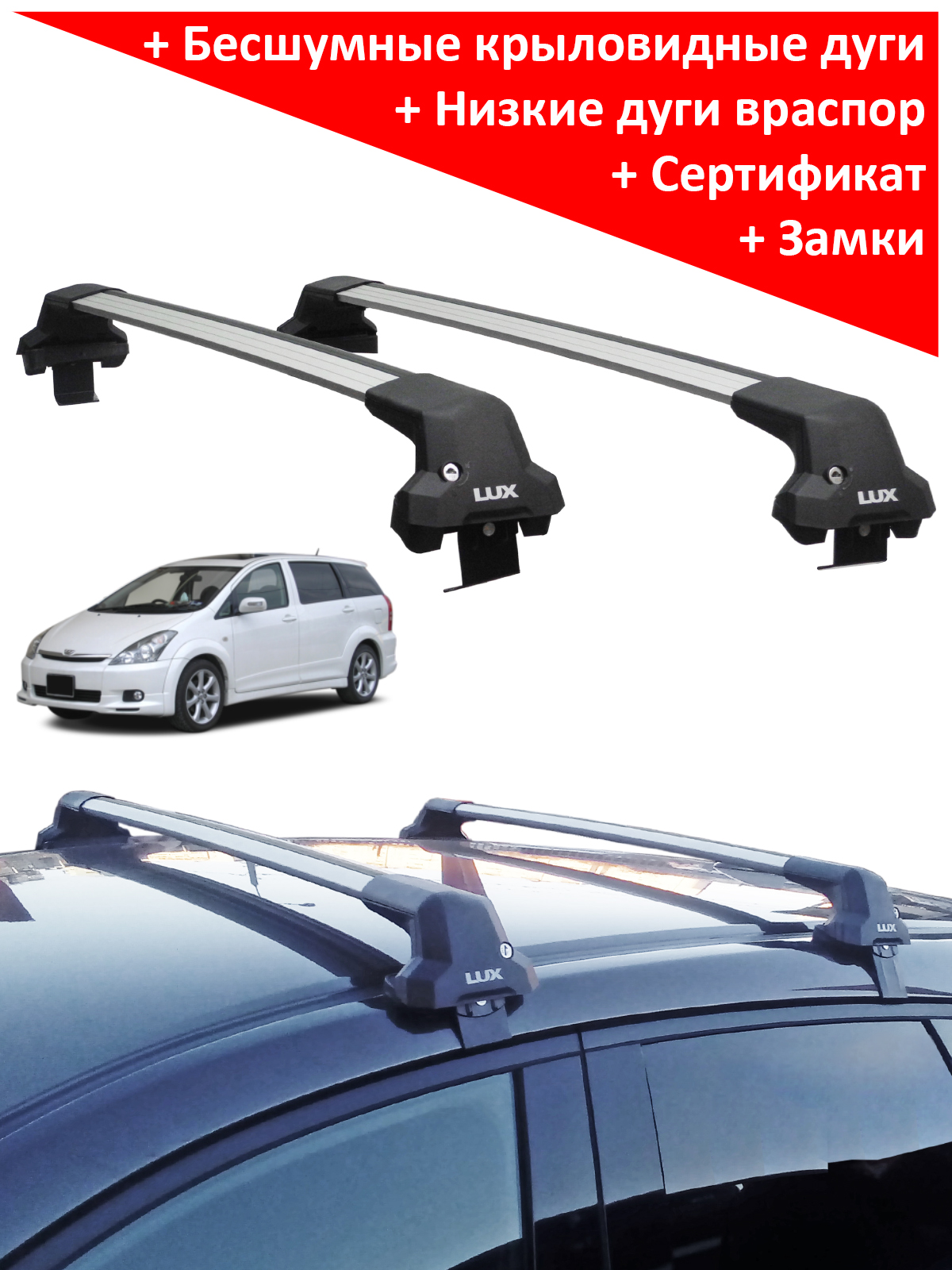 Багажник на крышу Toyota Wish I (AE10) (минивен, 2003-2009), Lux City (без выступов), с замком, серебристые крыловидные дуги