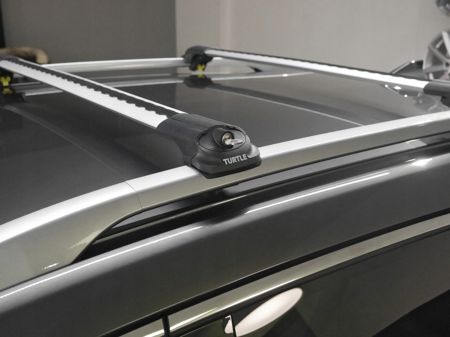 Багажник на рейлинги Turtle Air 1 (Турция), без вылетов, с аэродинамическими дугами серебристого цвета (122 см). Грузоподъемность - до 75 кг.
