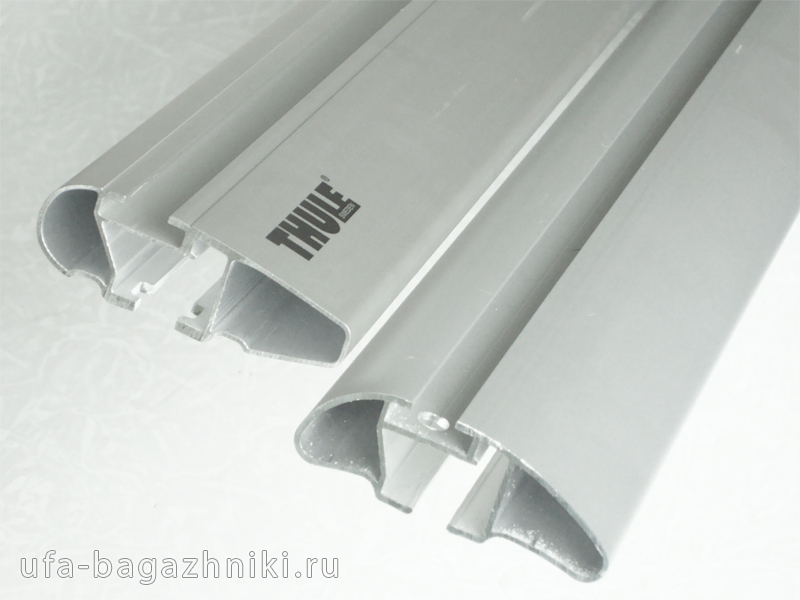 В основе багажной системы находятся 2 поперечные дуги крыловидной формы, изготовленные из алюминиевого профиля, серебристо-серого цвета, длиной 1260 мм. Ширина дуг составляет 8 см, на концах располагаются черные пластиковые заглушки. Дуги имеют дополнительный функционал, в них закрепляются аксессуары: лыжные насадки, велокрепления, грузовые фиксаторы – для этого служит специальный Т-образный слот, расположенный в верхней части дуги. В свободном состоянии Т-слот закрывается резиновым уплотнителем. Толщина стенок дуги составляет 2 мм, есть также внутренние ребра жесткости, обеспечивающие надежность и прочность конструкции.