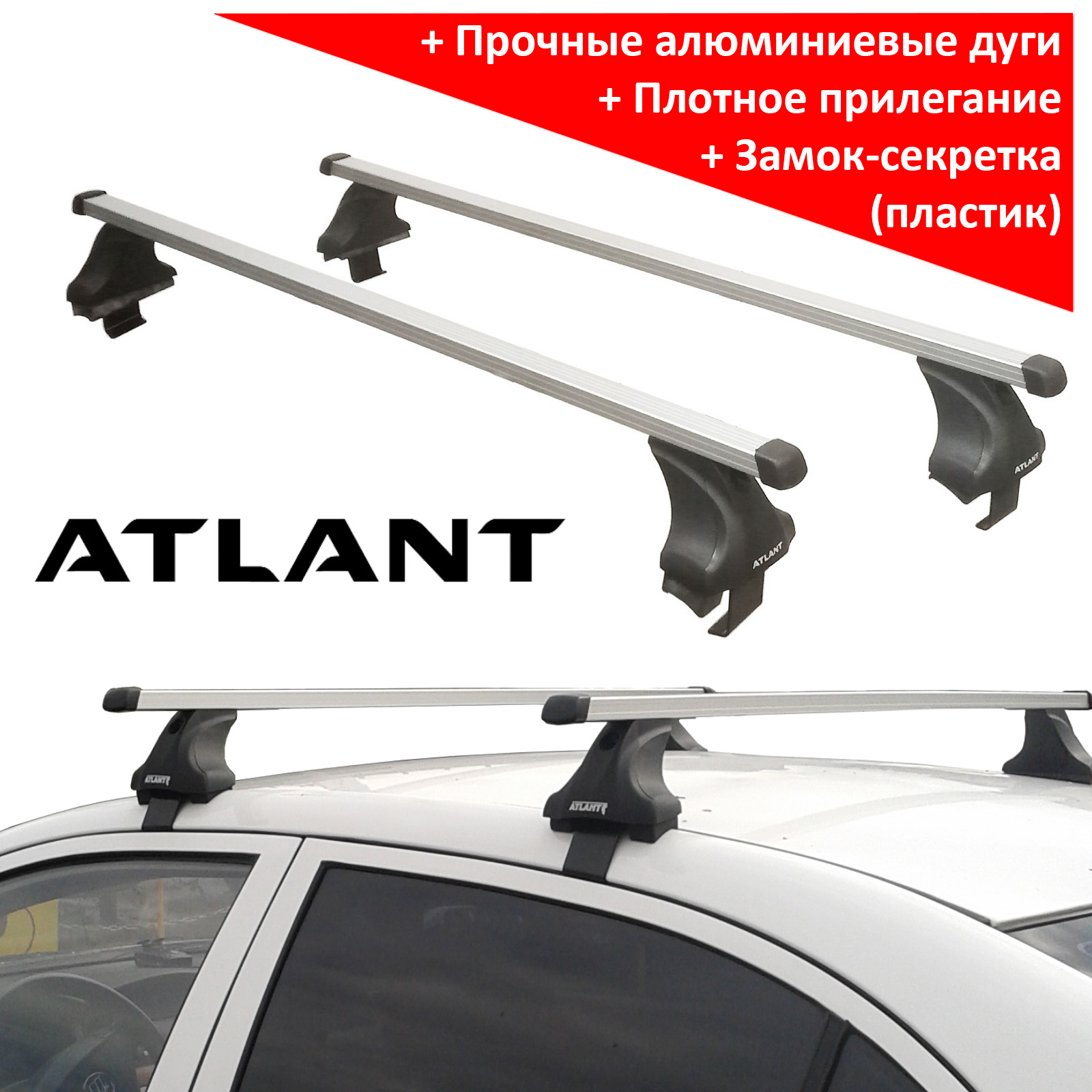 Багажник на крышy Mitsubishi Lancer 10, sedan, Атлант, прямоугольные дуги, опора E