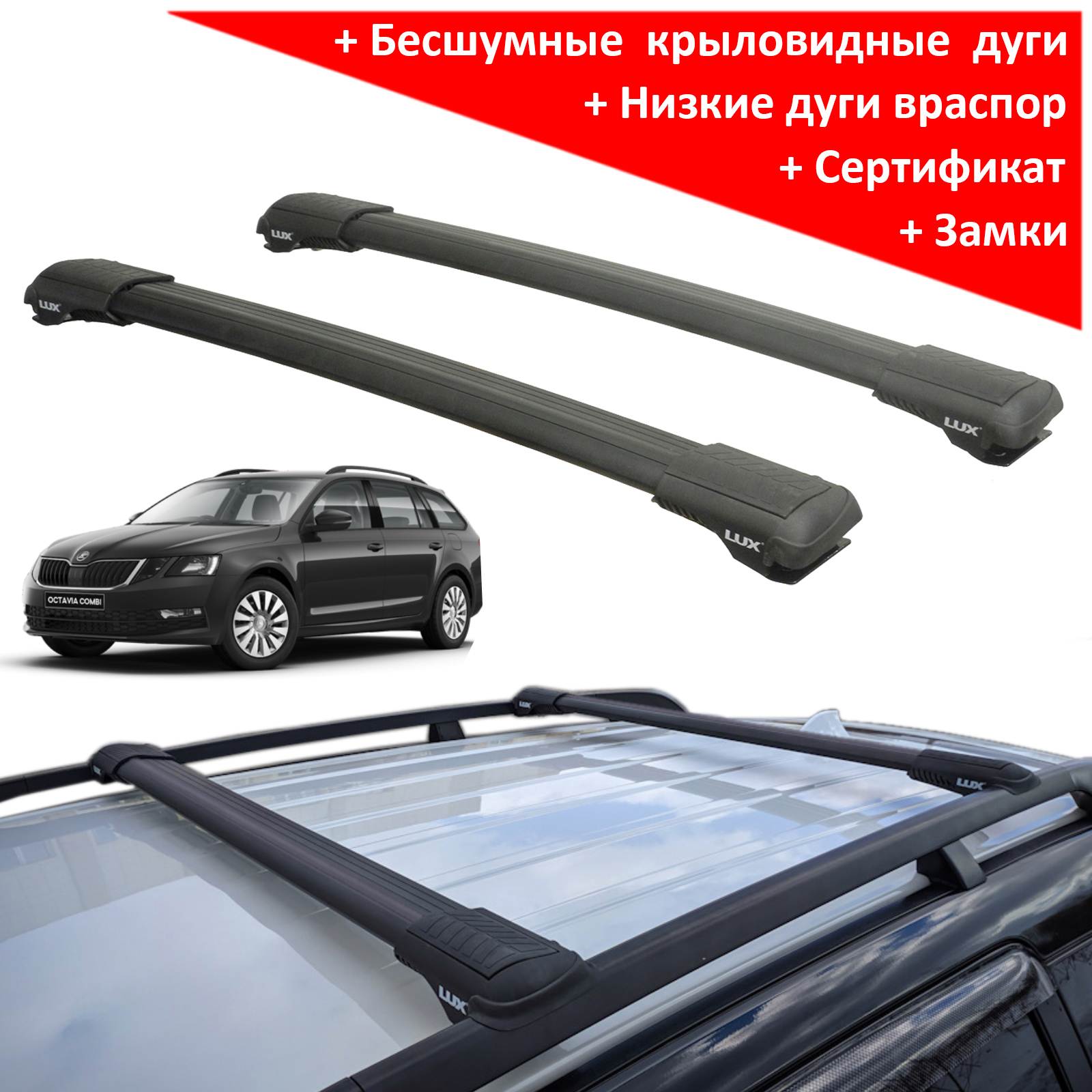 Багажник на рейлинги Škoda Octavia A7 Universal, Lux Hunter L44-B, черный, крыловидные аэродуги