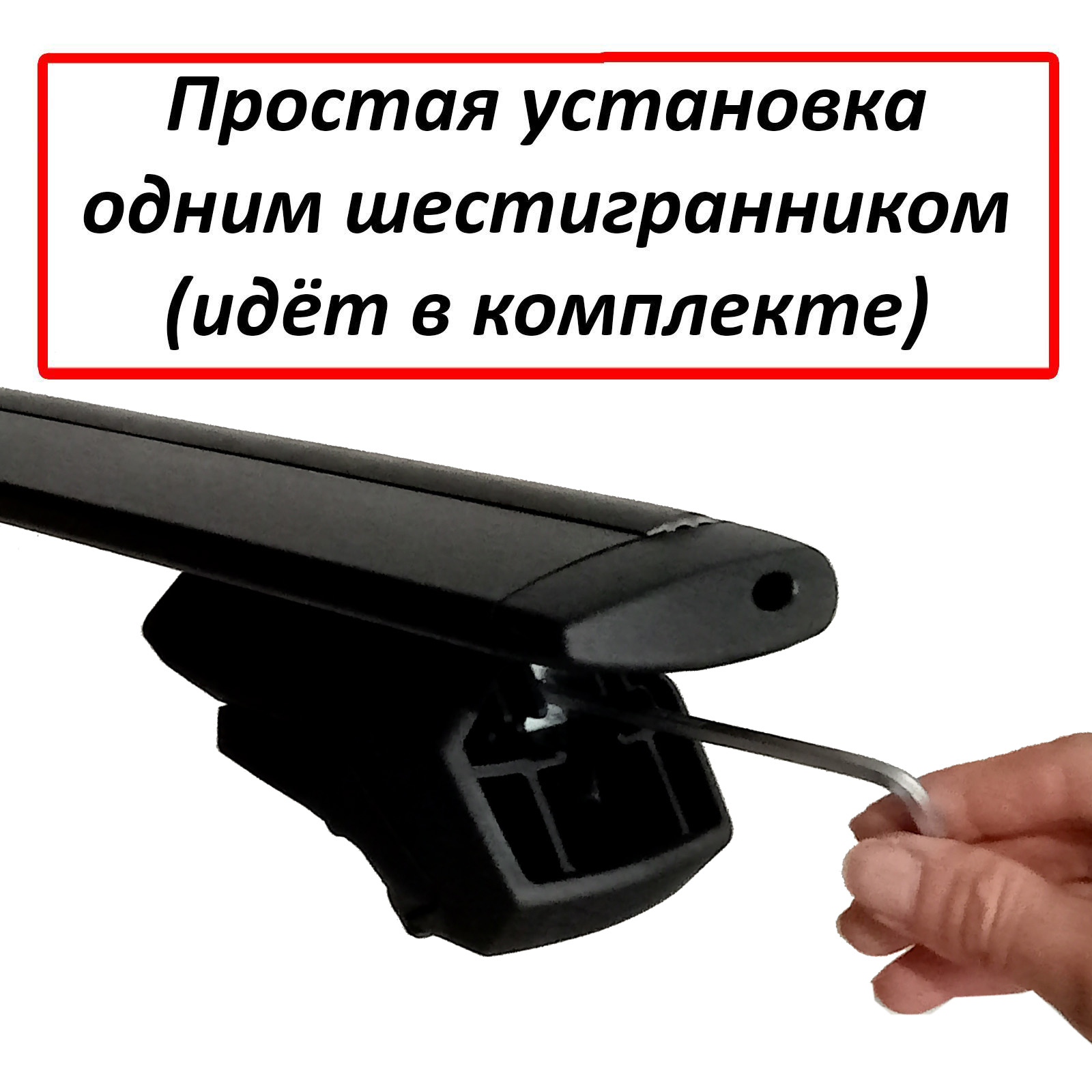 В комплект представленной багажной системы входят 2 поперечины и четыре крепления на рейлинги. Поперечные дуги изготовлены из алюминия, имеют крыловидный профиль, их длина - 1250 мм (также есть варианты 1100 мм и 1350 мм), сверху дуг проходит Т-профиль, предназначенный для установки дополнительного оборудования - велокреплений, лыжных насадок, фиксаторов груза и т.д. Концы дуг закрываются пластиковыми заглушками.