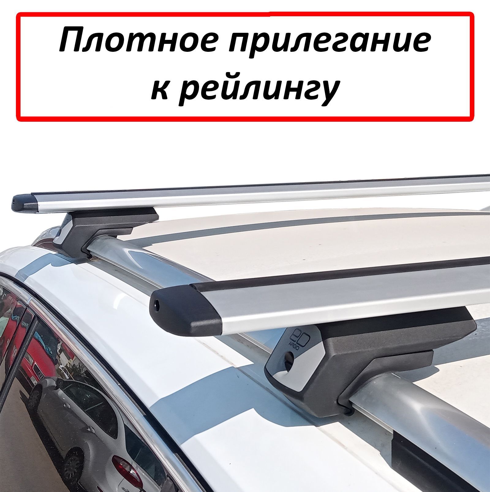 В комплект представленной багажной системы входят 2 поперечины и четыре крепления на рейлинги. Поперечные дуги изготовлены из алюминия, имеют крыловидный профиль, их длина - 1250 мм (также есть варианты 1100 мм и 1350 мм), сверху дуг проходит Т-профиль, предназначенный для установки дополнительного оборудования - велокреплений, лыжных насадок, фиксаторов груза и т.д. Концы дуг закрываются пластиковыми заглушками.