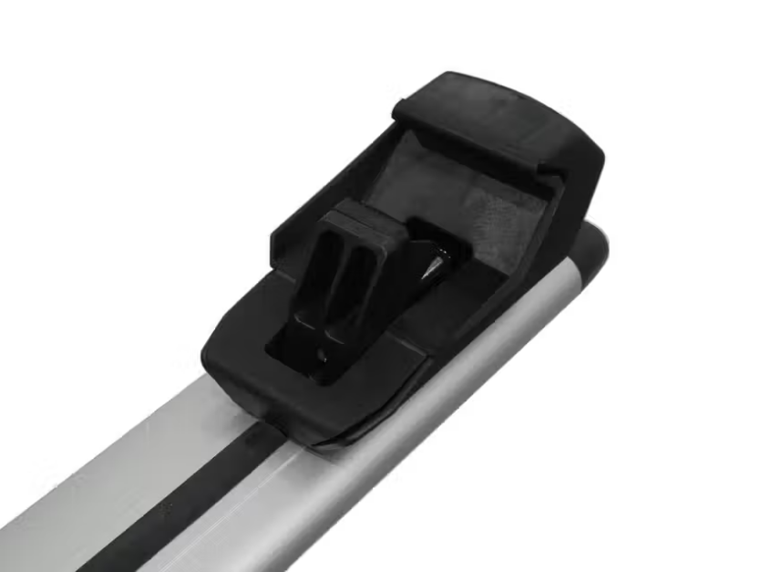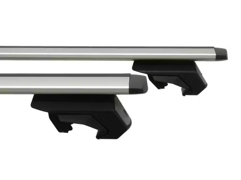 В комплект представленной багажной системы входят 2 поперечины и четыре крепления на рейлинги. Поперечные дуги изготовлены из алюминия, имеют крыловидный профиль, их длина - 1100 мм. Поверх дуг проходит Т-профиль, предназначенный для установки дополнительного оборудования - велокреплений, лыжных насадок, фиксаторов груза и т.д. Концы дуг закрываются пластиковыми заглушками.