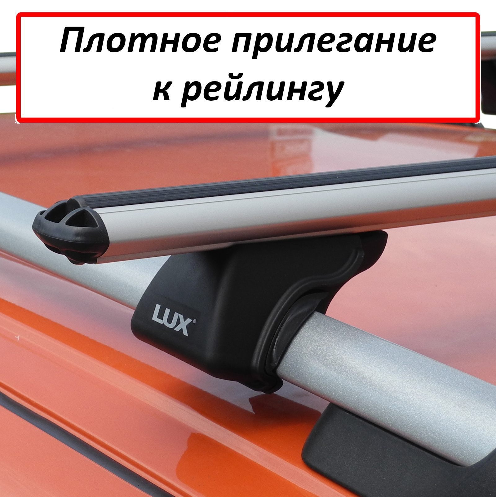 Автобагажник на рейлинги Lux Классик с алюминиевыми аэродинамическими дугами тип аэро-классик (ширина 53 мм), производство - Lux (Россия). Грузоподъемность до 75 кг.