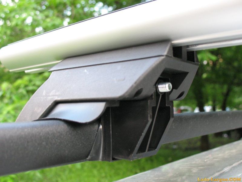 Необходимы поперечины на рейлинги вашего Ларгуса? Недорогие, надежные, не портящие сами рейлинги, которые бы легко ставились и имели защиту от съёма? Отличный вариант - багажник на крышу на рейлинги Lada Largus со стальными прямоугольными дугами производства Евродеталь (Россия). Рекомендуемая нагрузка - до 75 кг.