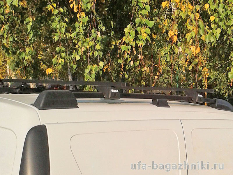 Комплект багажной системы состоит из 2 частей: пары поперечин и набора креплений на рейлинги. Поперечные дуги изготовлены из стального профиля 30х20 мм, длиной 1100 мм. Поверх каждой дуги имеется пластиковая оболочка черного цвета, рельефная с верхней стороны. Концы дуг закрываются пластиковыми заглушками.