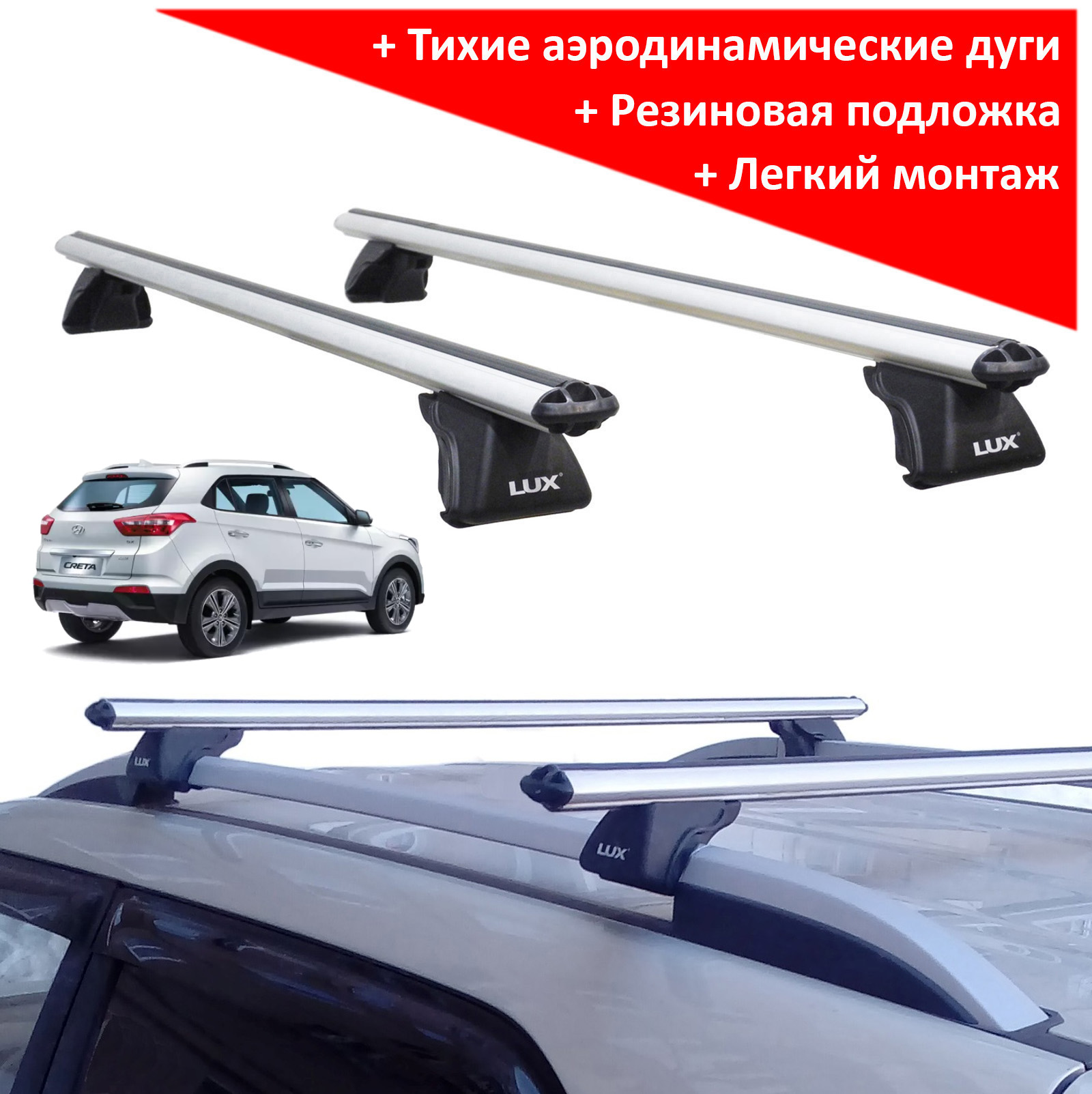 Багажник на рейлинги Hyundai Creta (2016-2021), Lux Классик с аэродинамическими дугами (53 мм)