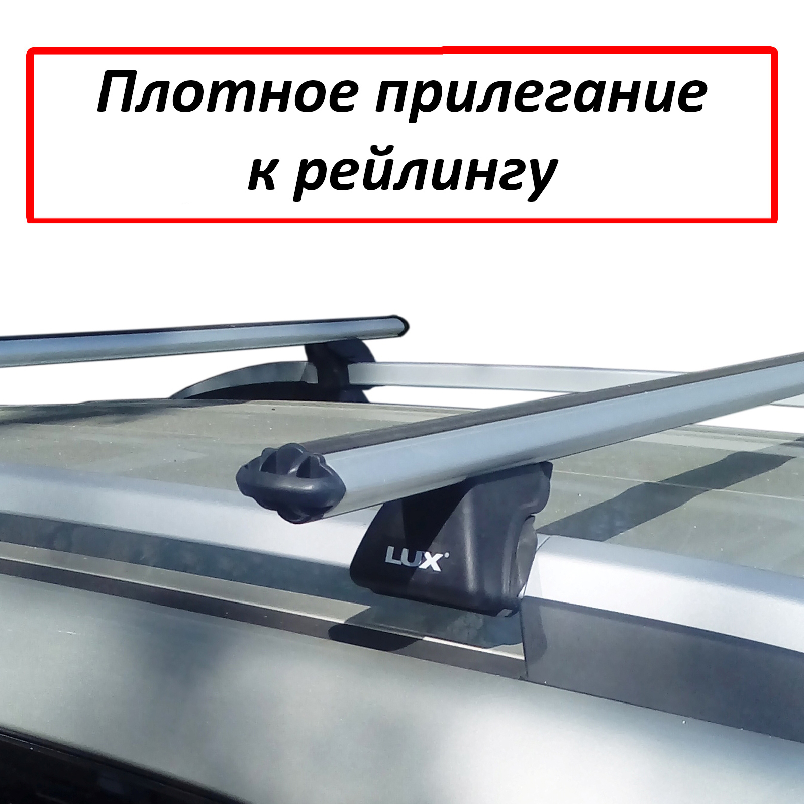 Автобагажник на рейлинги Lux Классик с алюминиевыми аэродинамическими дугами тип аэро-классик (ширина 53 мм), производство - Lux (Россия). Грузоподъемность до 75 кг.