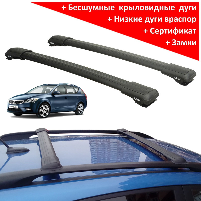 Багажник на рейлинги Kia Ceed universal 2007-12, Lux Hunter, черный, крыловидные аэродуги
