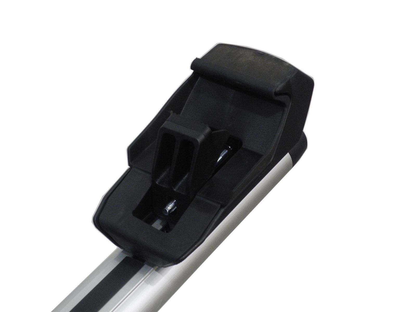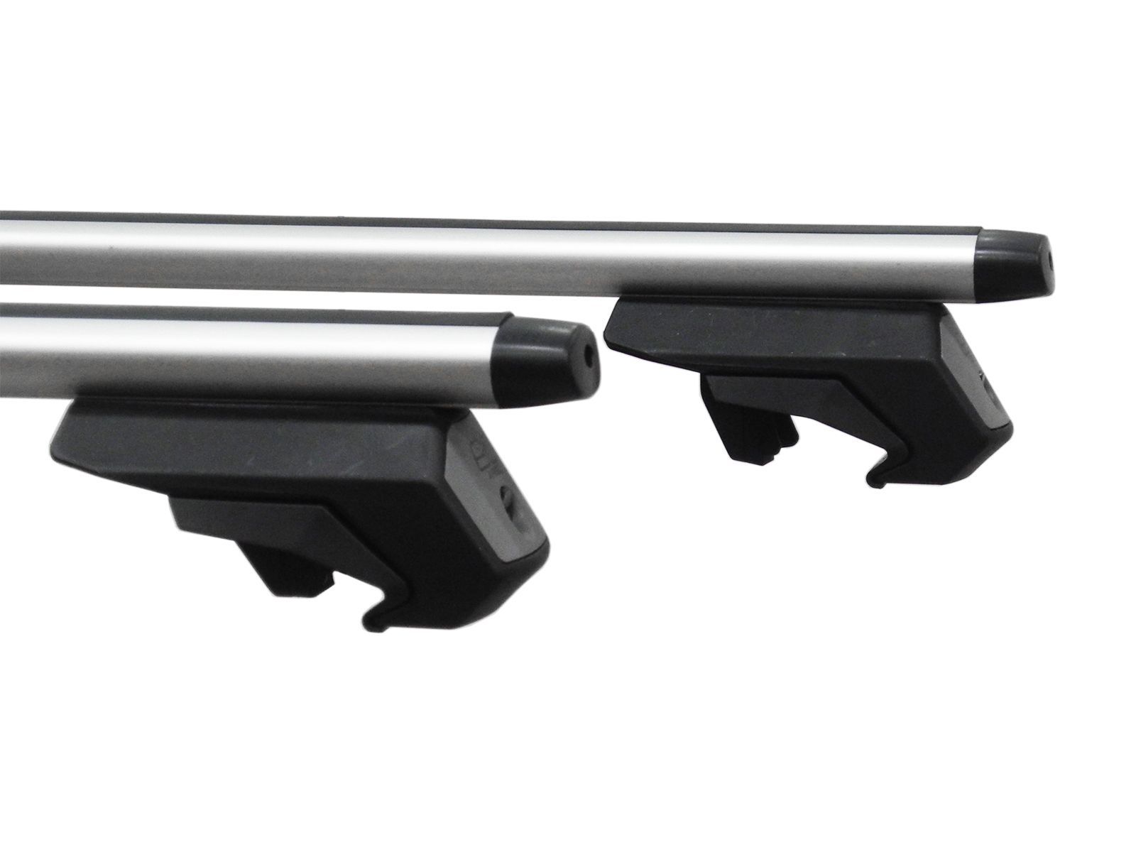 В комплект представленной багажной системы входят 2 поперечины и четыре крепления на рейлинги. Поперечные дуги изготовлены из алюминия, имеют аэродинамический профиль, их длина - 1100 мм, сверху дуг проходит Т-профиль, предназначенный для установки дополнительного оборудования - велокреплений, лыжных насадок, фиксаторов груза и т.д. Концы дуг закрываются пластиковыми заглушками.