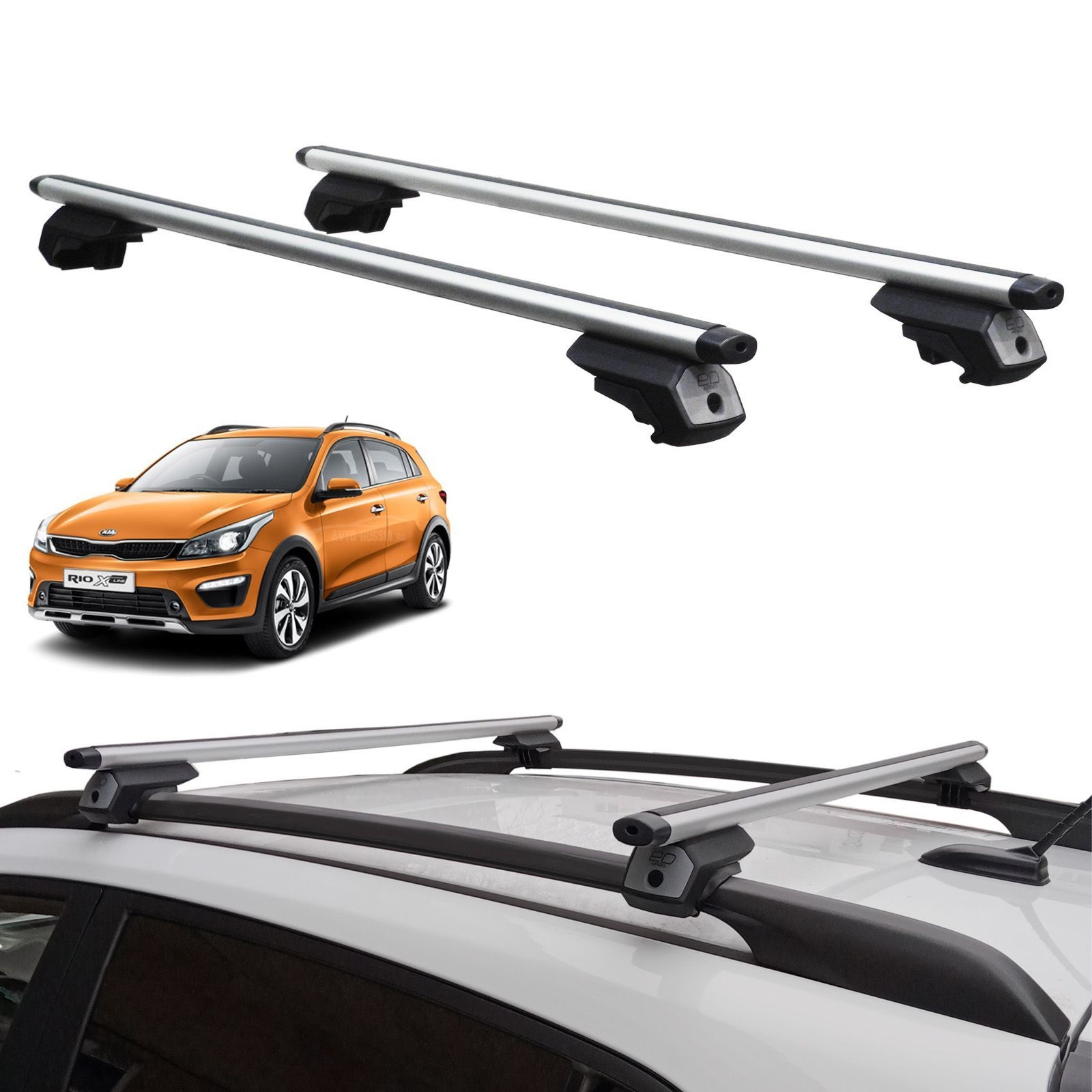 Багажник на рейлинги Kia Rio X-Line, Евродеталь Арго, аэродинамические дуги