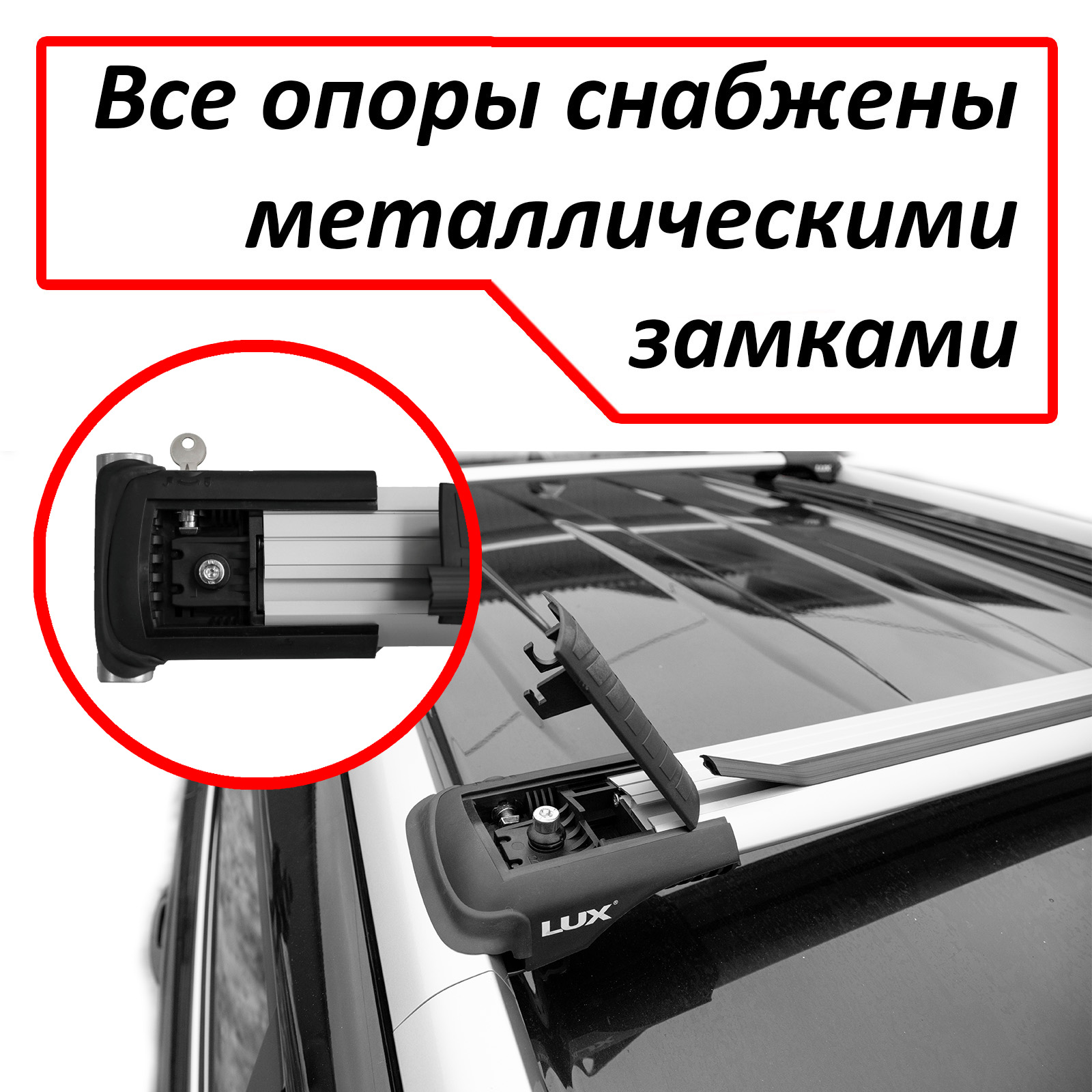 В комплекте: 2 поперечины с креплениями, 2 ключа от замка, шестигранник, инструкция по монтажу и эксплуатации. Установка багажника на рейлинги производится в считанные минуты, согласно прилагаемой инструкции. Купить багажник на рейлинги Lux Hunter вы можете в нашем интернет-магазине "Багажники". Доставка по Уфе и России.
