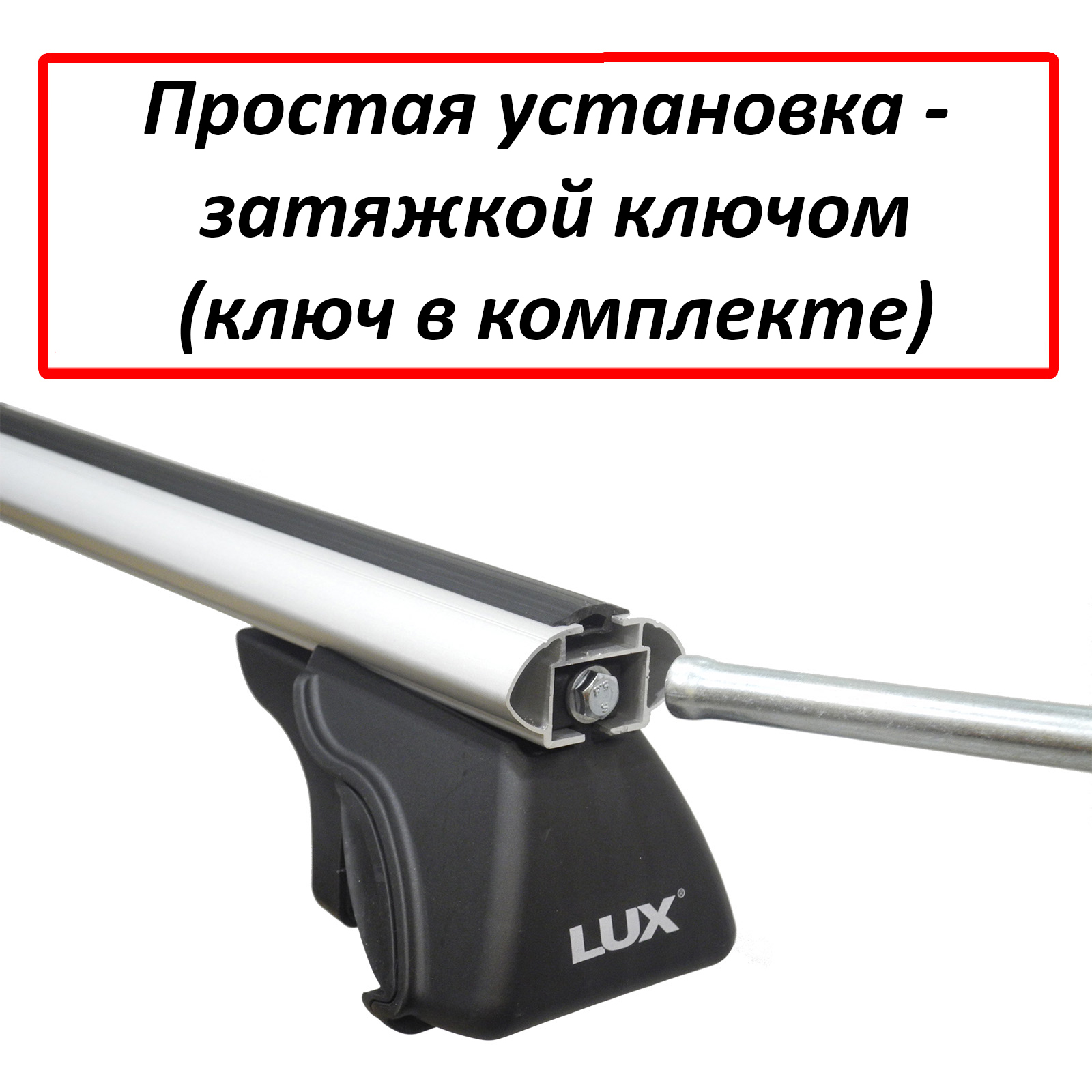 Автобагажник на рейлинги Lux Классик с алюминиевыми аэродинамическими дугами тип аэро-классик (ширина 53 мм), производство - Lux (Россия). Грузоподъемность до 75 кг.