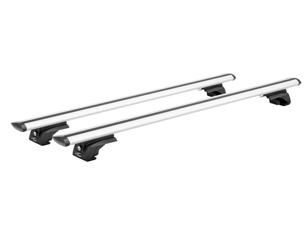 Основой багажника служат 2 поперечные дуги крыловидного профиля, выполненные из алюминия, длиной 1200 мм (возможны такжи длины 1100 и 1300 мм). Форма дуг приближена к форме крыла самолета, что делает их максимально аэродинамичными и бесшумными. Каждая дуга имеет верхний Т-образный паз, предназначенный для установки дополнительных аксессуаров – велокреплений, лыжных насадок, грузовых фиксаторов. В свободном состоянии данный Т-паз закрывается резиновым уплотнителем. Дуга также имеет внутренние ребра жесткости, повышающие надежность и устойчивость конструкции, концы дуги закрываются парой пластиковых заглушек.