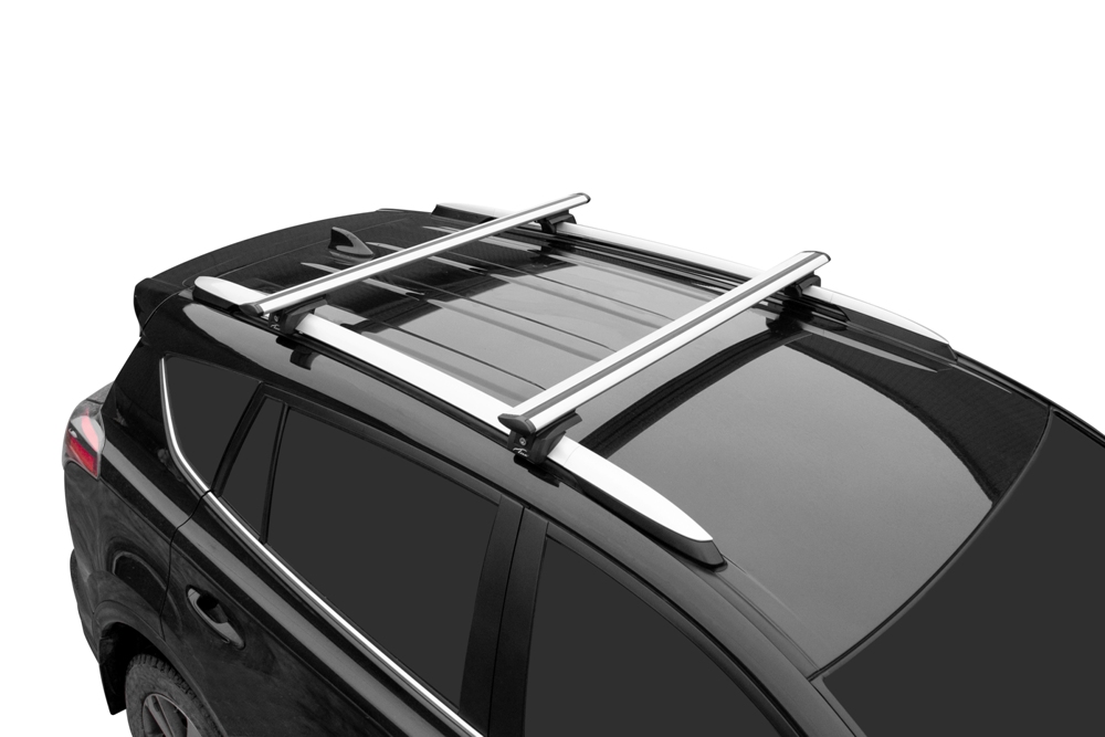 Алюминиевые поперечины аэродинамического крыловидного профиля на рейлинги, производство производство Lux (Россия). С замком. Грузоподъемность до 75 кг.