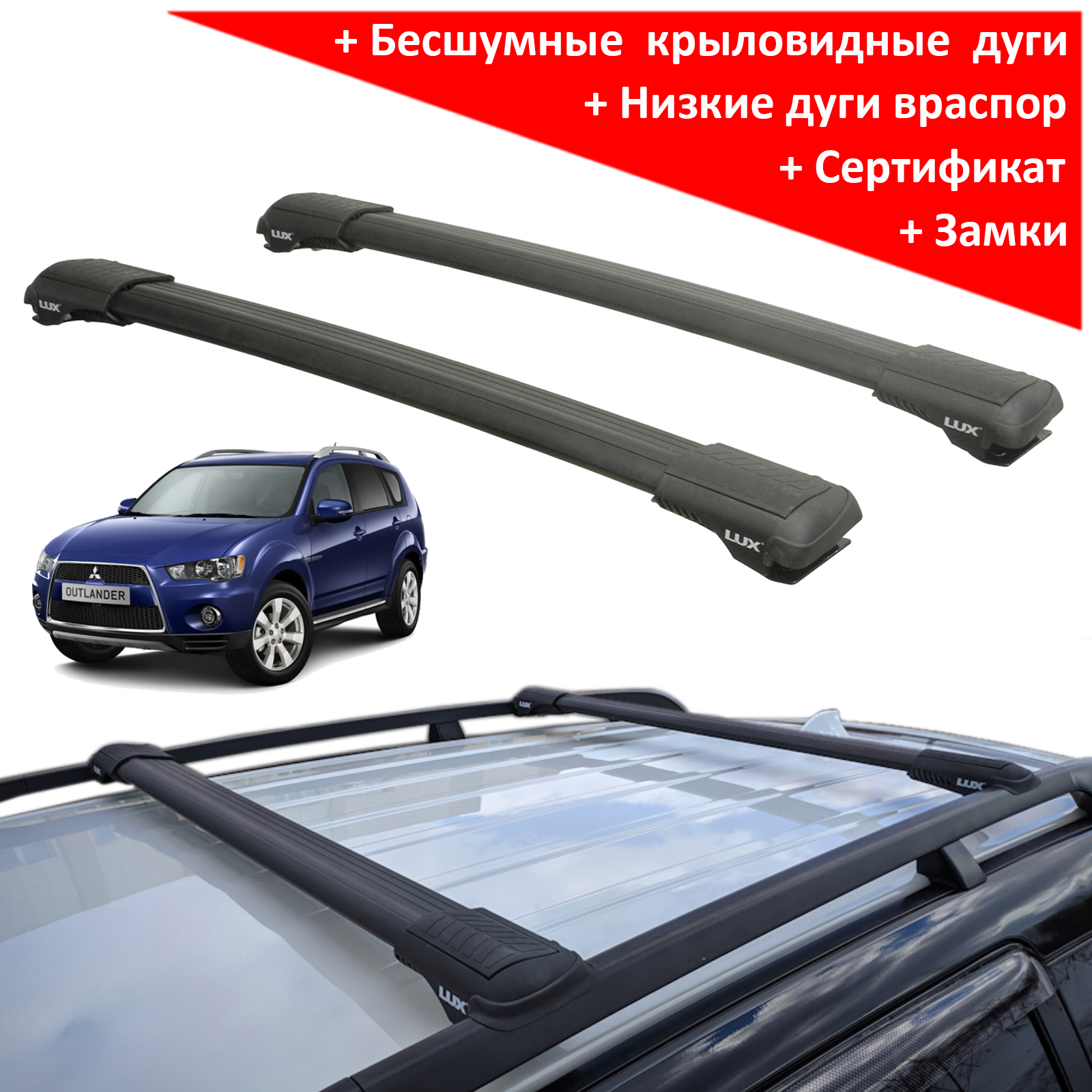 Багажник на рейлинги Mitsubishi Outlander XL 2007-2013, Lux Hunter, черный, крыловидные аэродуги
