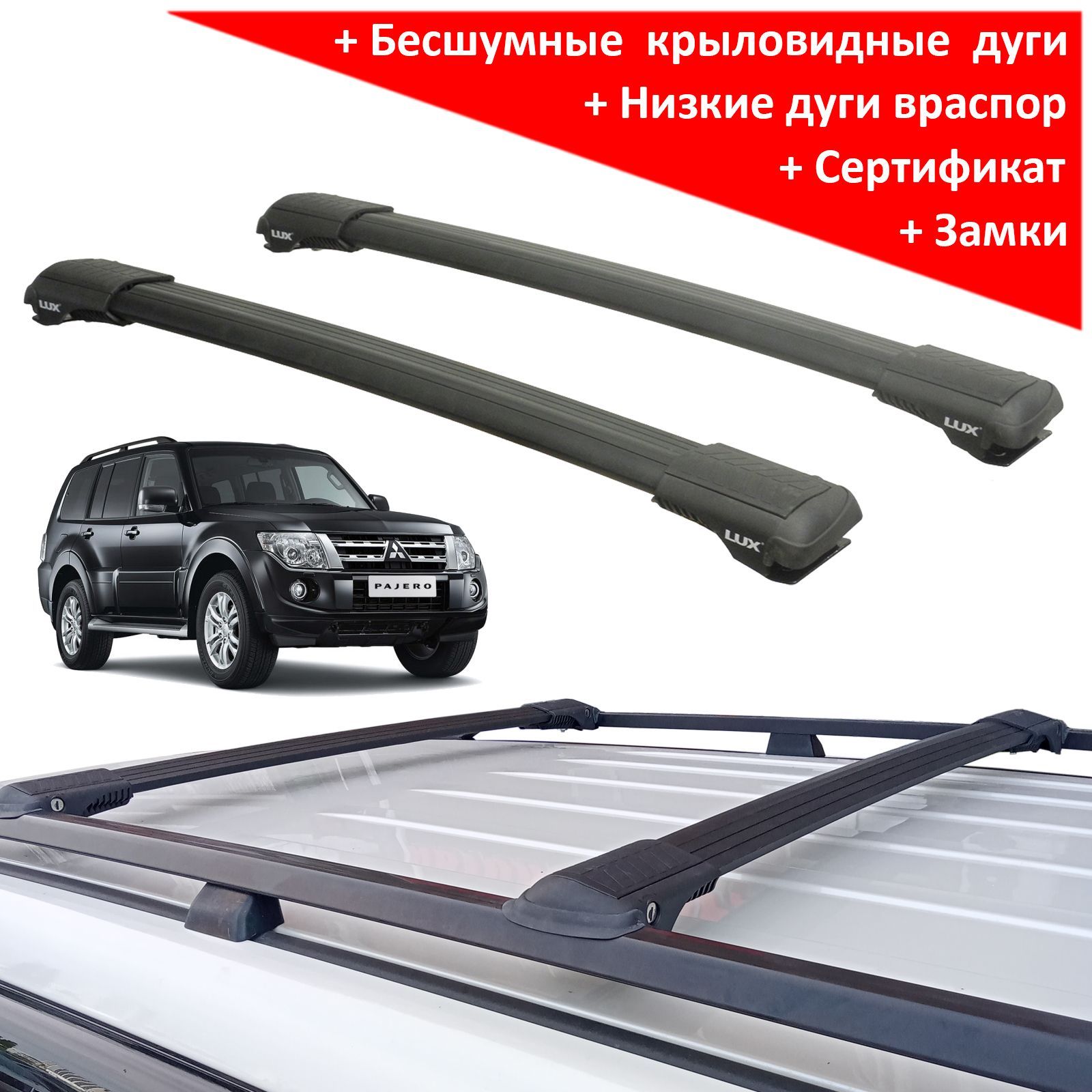 Багажник на рейлинги Mitsubishi Pajero 4 (2006-...), Lux Hunter, черный, крыловидные аэродуги