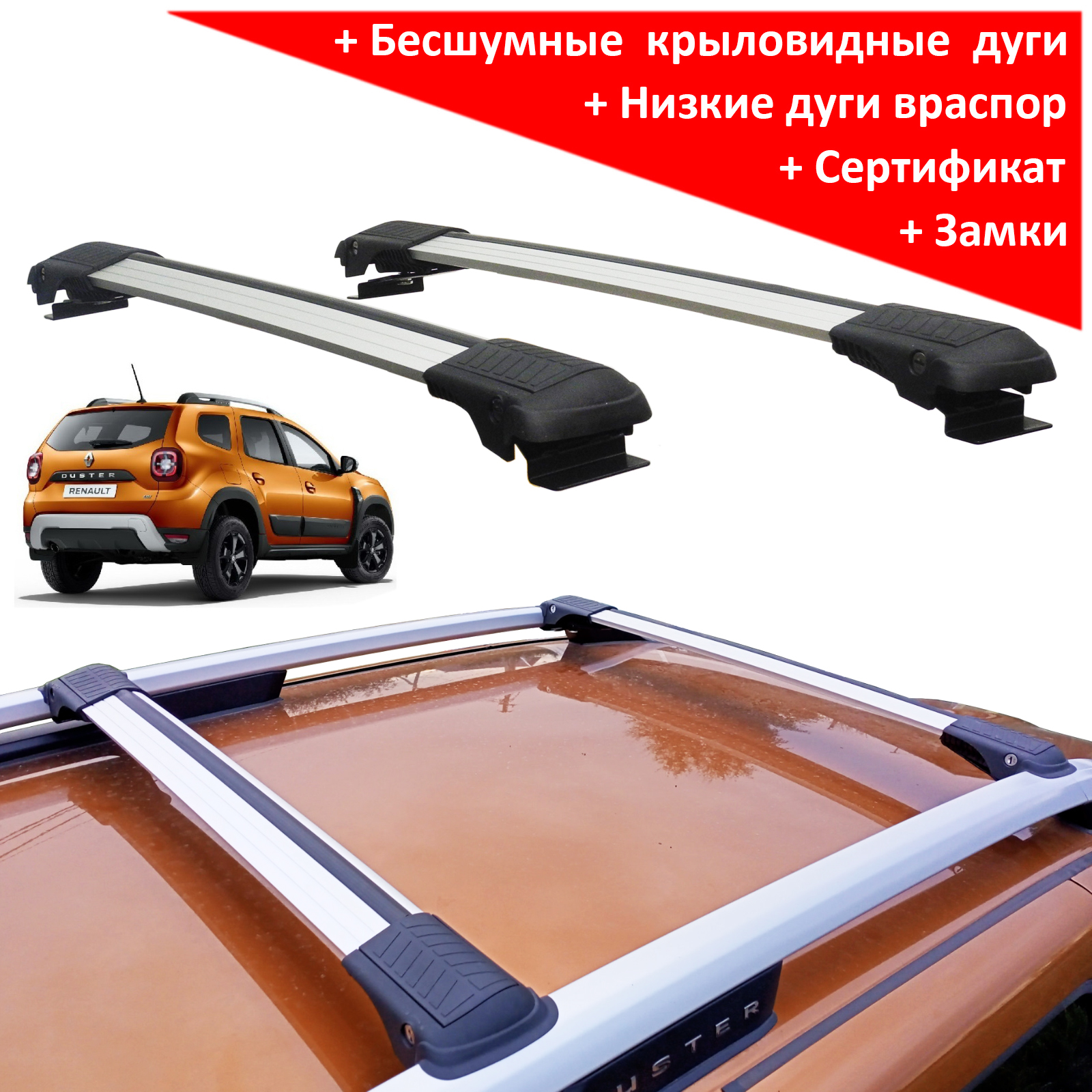 Багажник на рейлинги Renault Duster 2021-..., Lux Hunter, серебристый, крыловидные аэродуги