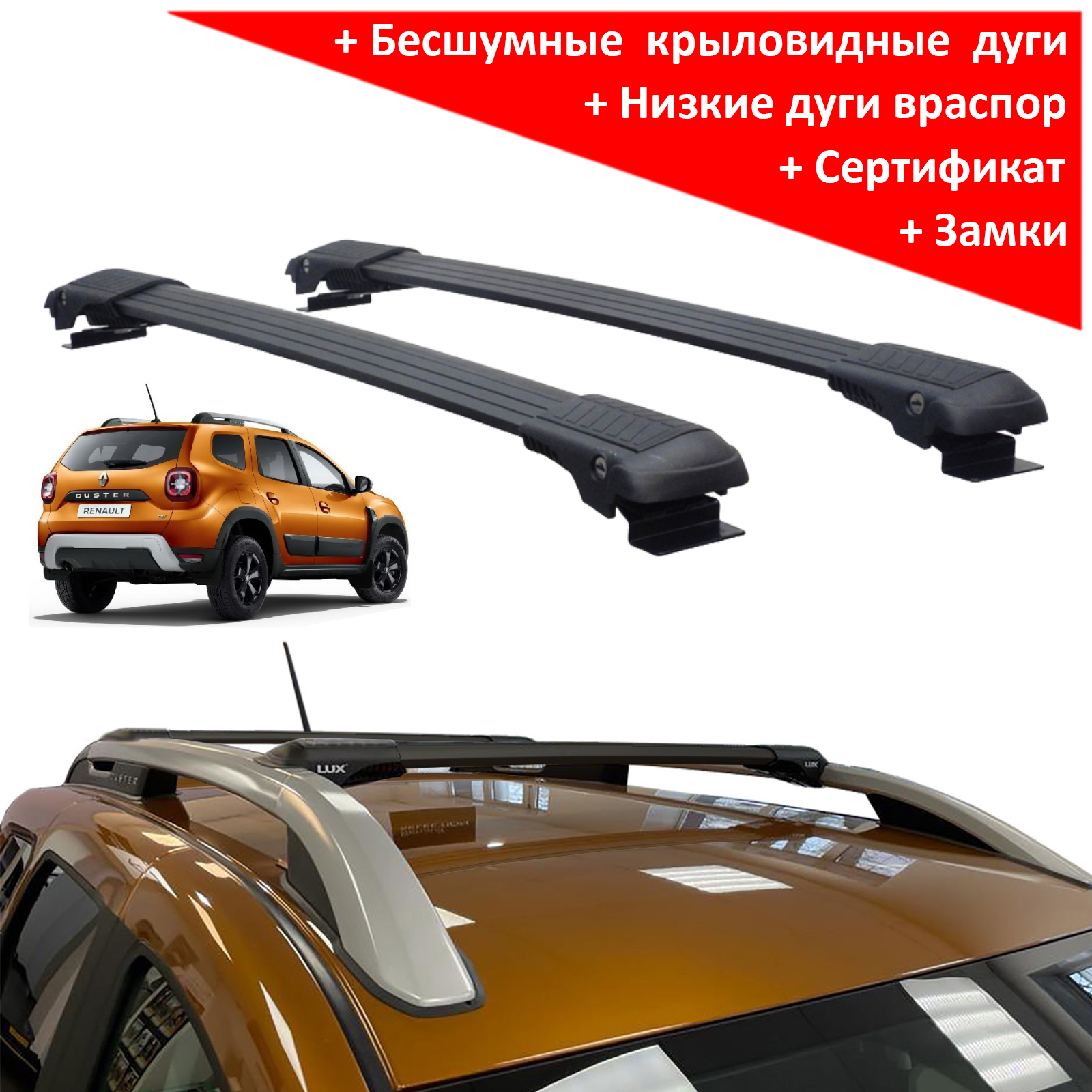 Багажник на рейлинги Renault Duster 2021-..., Lux Hunter, черный, крыловидные аэродуги