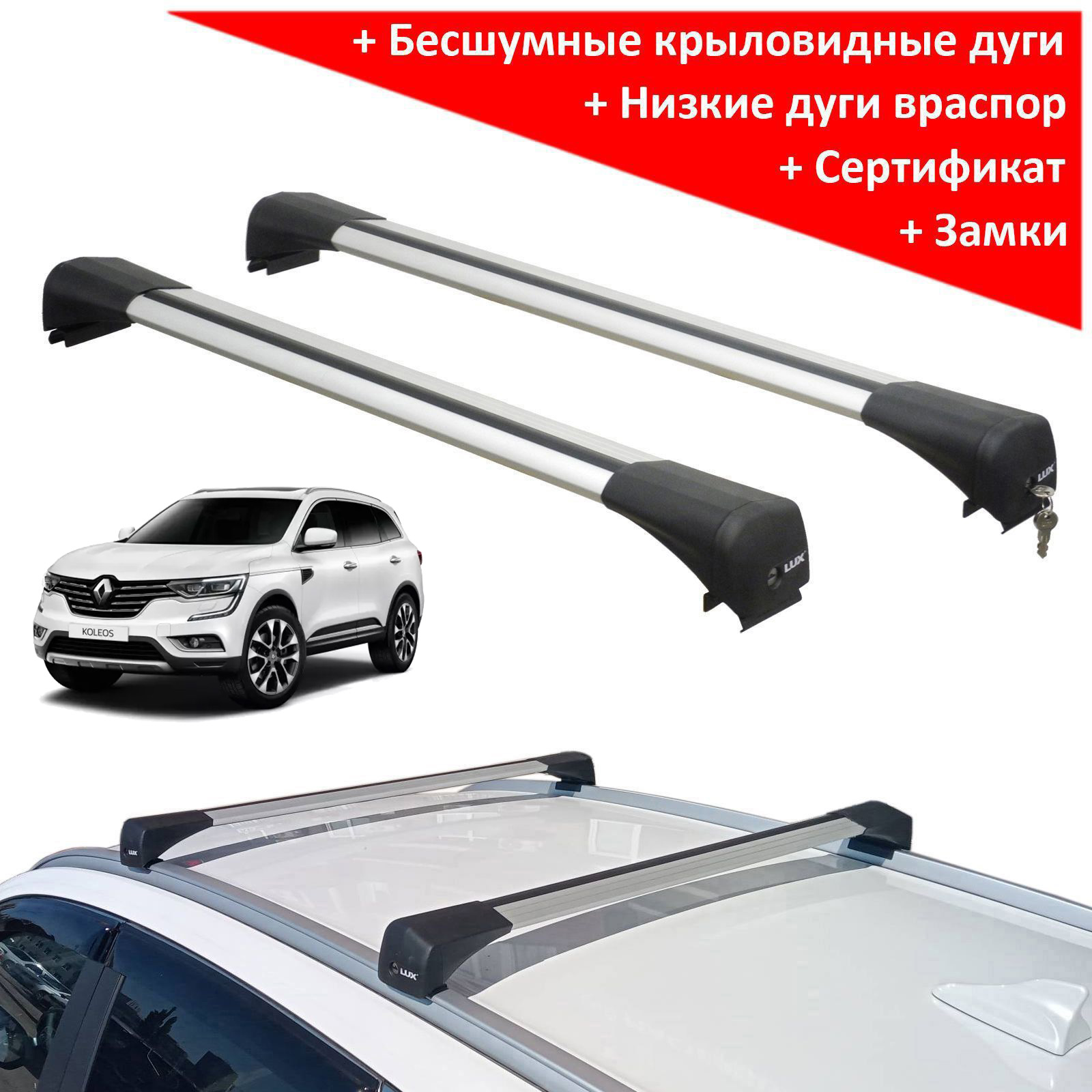 Багажник на рейлинги Renault Koleos 2016-..., Lux Bridge, крыловидные дуги (серебристый цвет)
