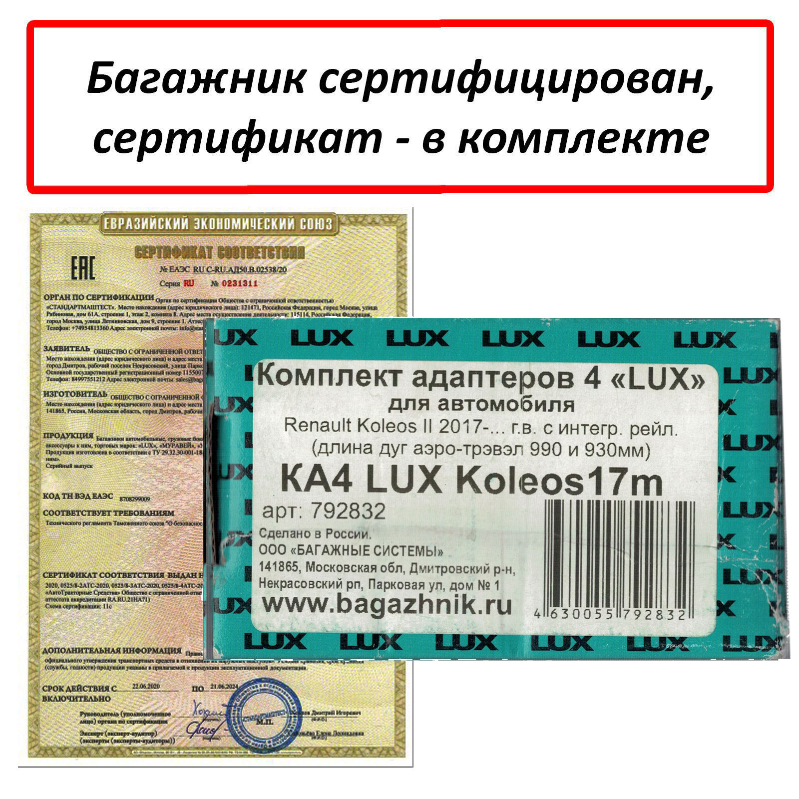 Установка багажника на интегрированные рейлинги производится согласно прилагаемой инструкции. Купить багажник на Renault Koleos марки Lux вы можете в нашем интернет-магазине "Багажники". Доставка по России.