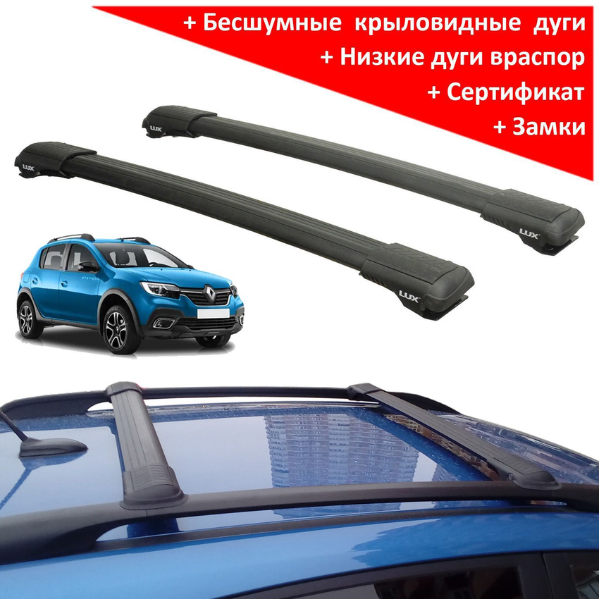 Багажник на рейлинги Renault Sandero / Renault Sandero Stepway, Lux Hunter L44-B, черный, крыловидные аэродуги