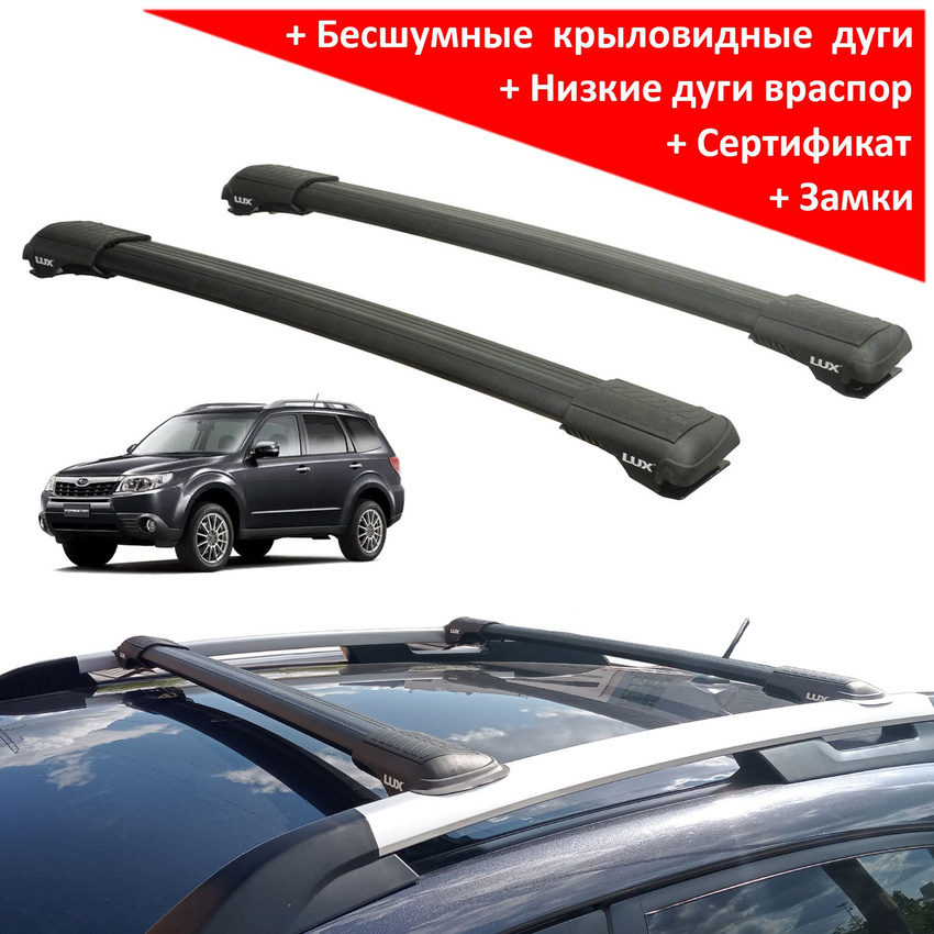 Багажник на рейлинги Subaru Forester SH 2007-12, Lux Hunter L44-B, черный, крыловидные аэродуги