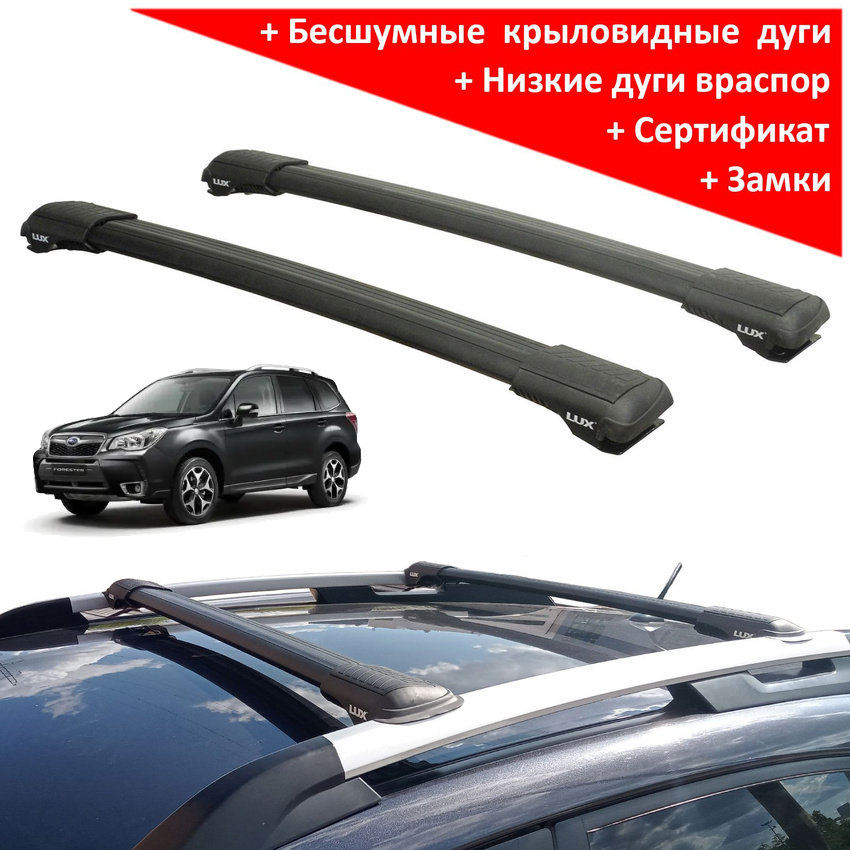 Багажник на рейлинги Subaru Forester SJ 2012-18, Lux Hunter L54-B, черный, крыловидные аэродуги
