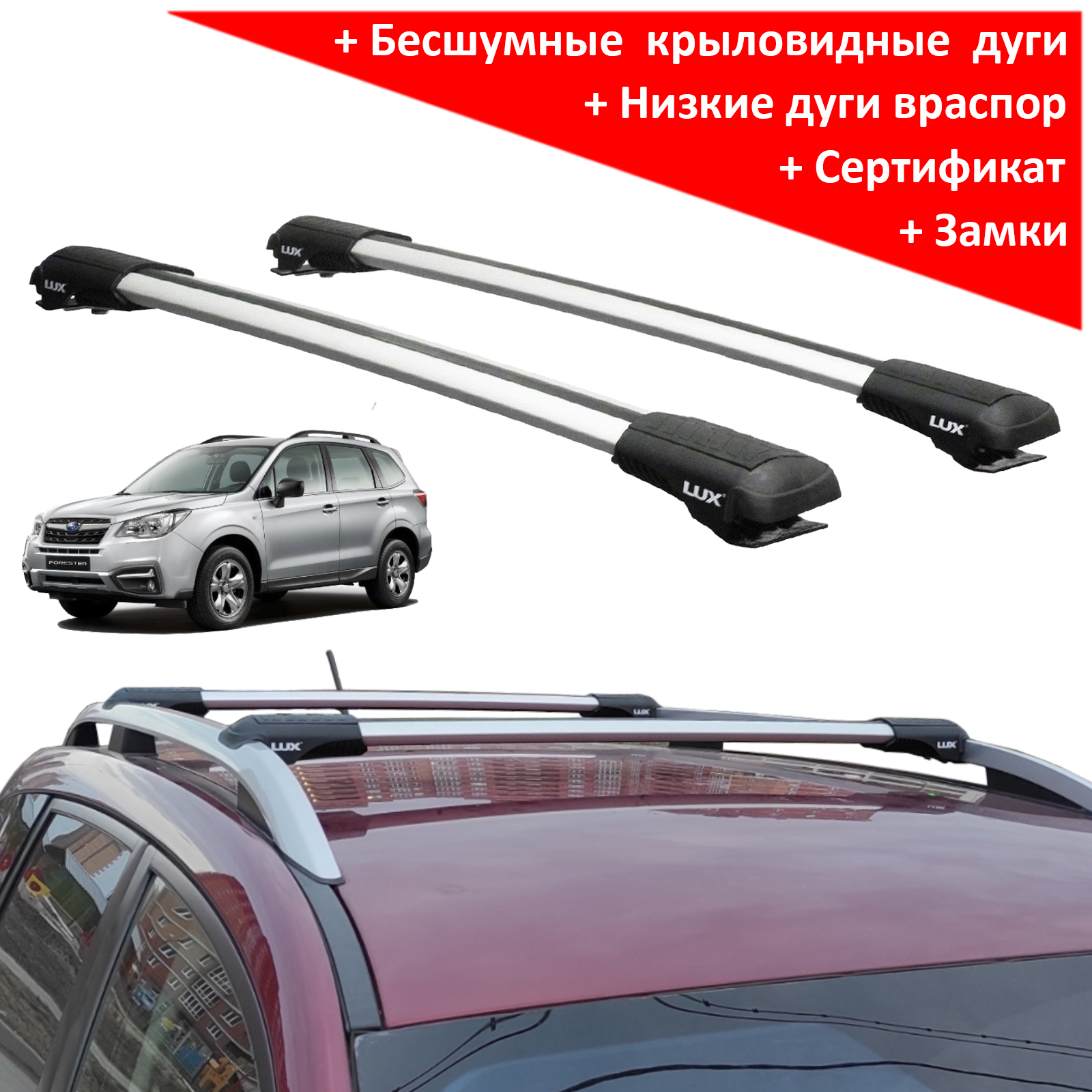 Багажник на рейлинги Subaru Forester SJ 2012-18, Lux Hunter L54-R, серебристый, крыловидные аэродуги