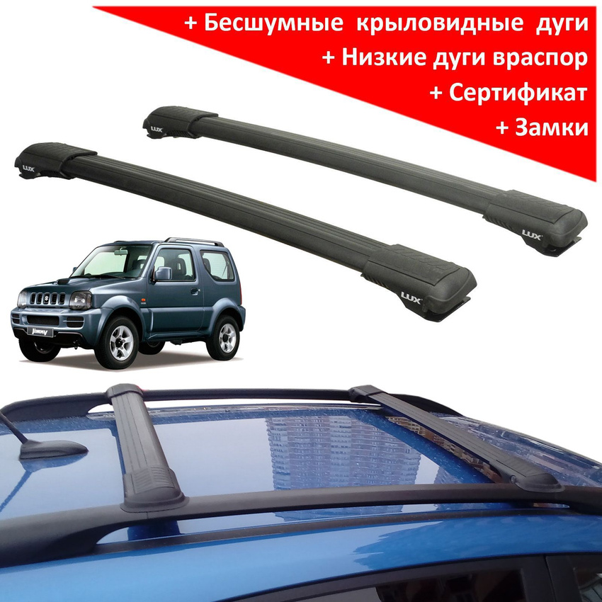 Багажник на рейлинги Suzuki Jimny 1998-2018, Lux Hunter L44-B, черный, крыловидные аэродуги