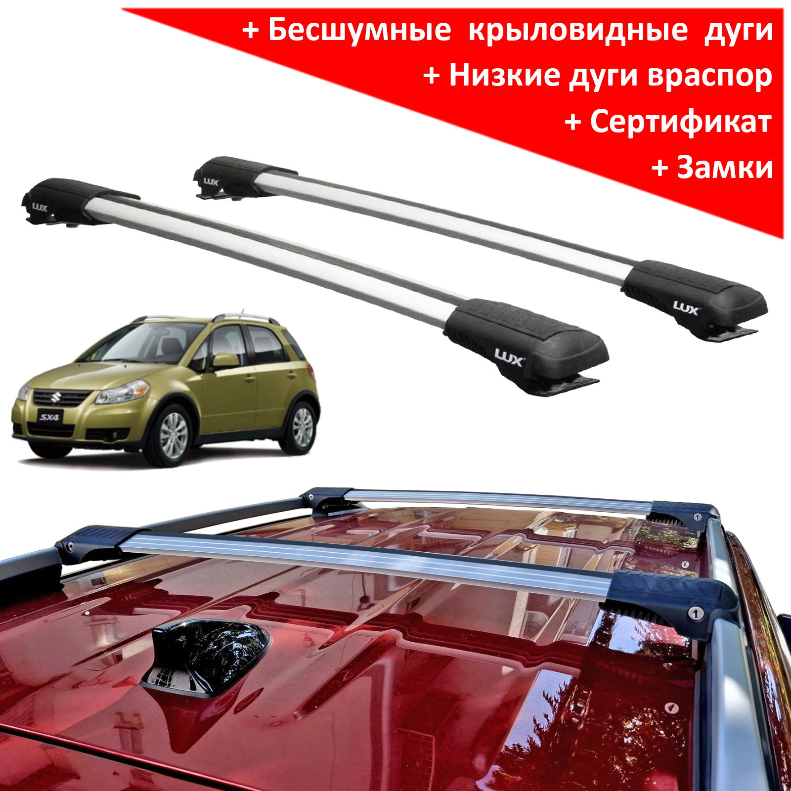 Багажник на рейлинги Suzuki SX4 (2006-13, hatchback), Lux Hunter, серебристый, крыловидные аэродуги