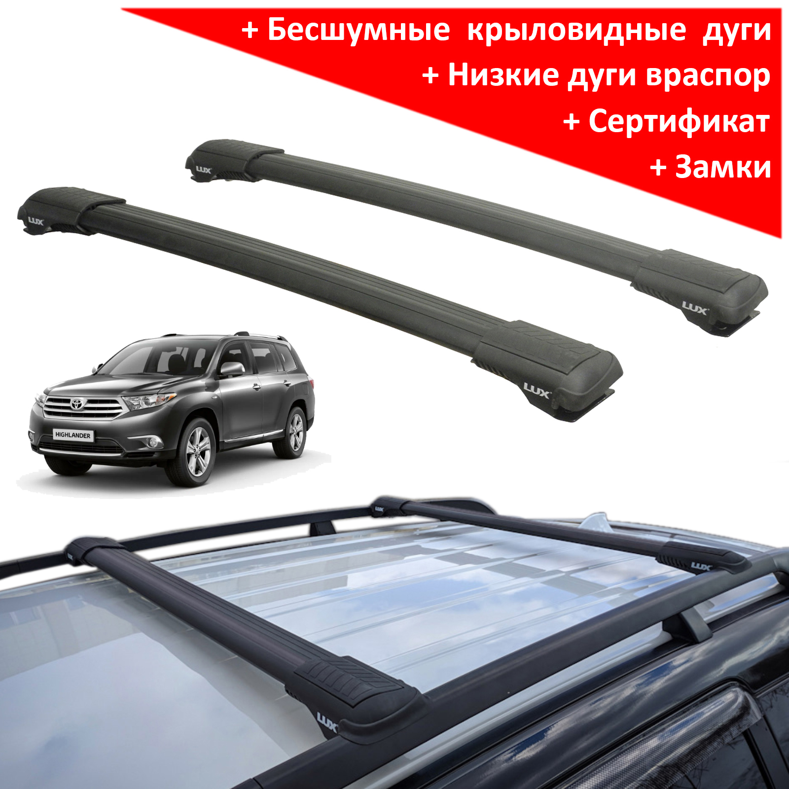 Багажник на рейлинги Toyota Highlander 2007-14, Lux Hunter, черный, крыловидные аэродуги