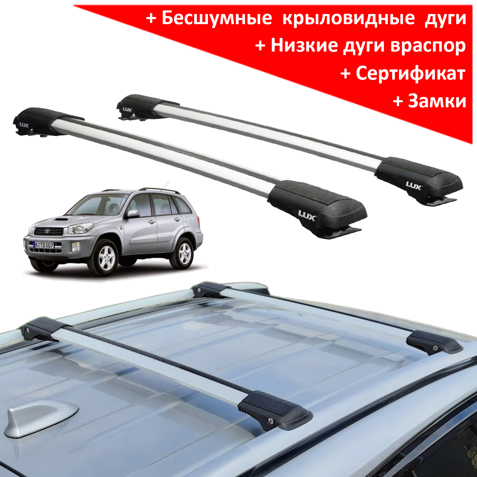 Багажник на рейлинги Toyota RAV4 2000-2006 (XA20), Lux Hunter, серебристый, крыловидные аэродуги