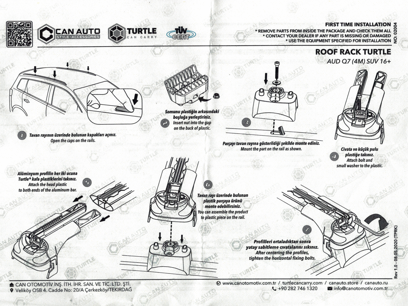Представляем багажник на интегрированные рейлинги Turtle Air 3 для Audi Q7 2015-... от турецкого производителя автоаксессуаров CAN OTOMOTIV. Крепление данной багажной системы производится на интегрированный рейлинг (в штатное место), рекомендуемая нагрузка - до 75 кг.